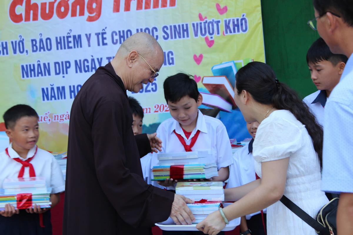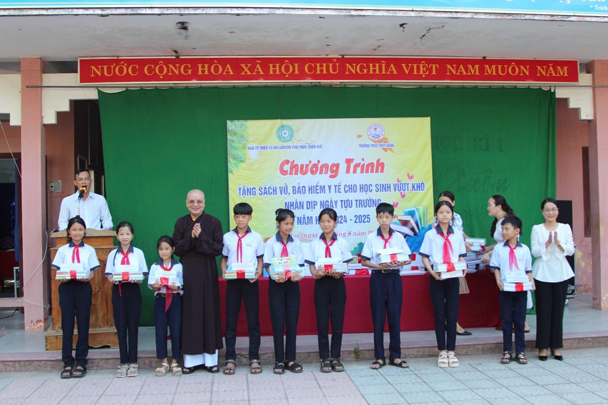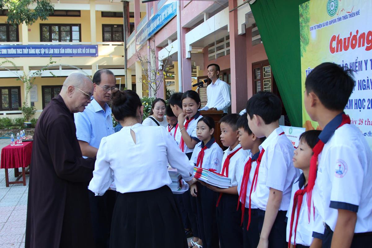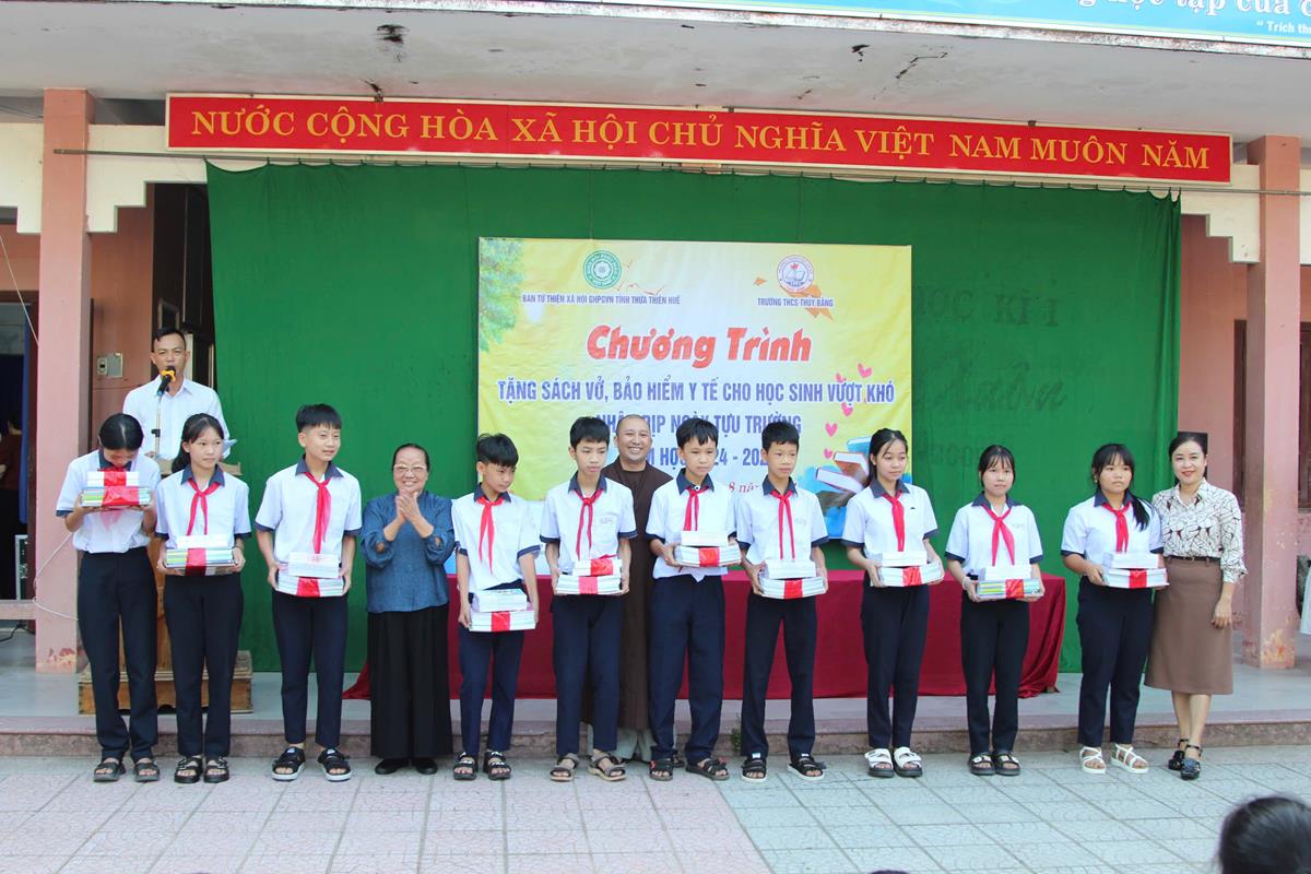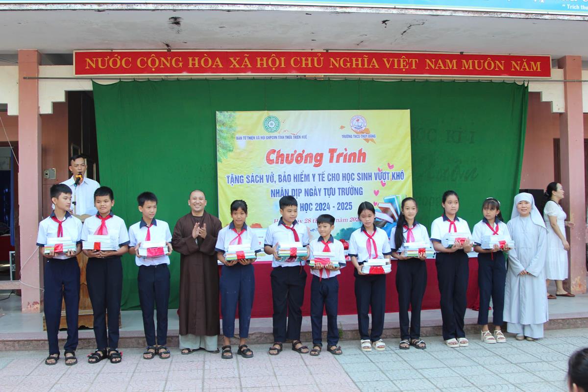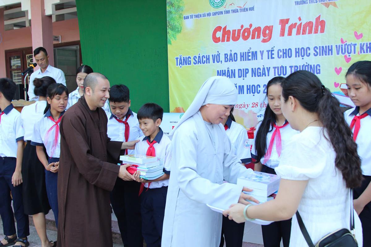 Chương trình diễn ra trong không khí hân hoan, phấn khởi của một năm học mới bắt đầu. Với mong muốn các em học sinh tiếp tục nỗ lực học tập chinh phục tri thức, Ban Từ thiện Xã hội đã trao 50 bộ sách giáo khoa, vở học tập cho 50 em học sinh có hoàn cảnh khó khăn trị giá 25 triệu đồng. Ngoài ra, Ban Từ thiện đã tặng 25 thẻ Bảo hiểm Y tế cho 25 em học sinh trị giá 22 triệu đồng.