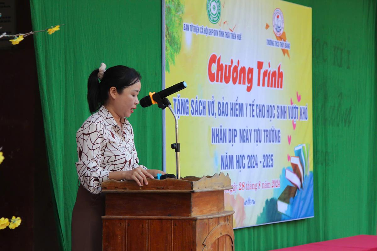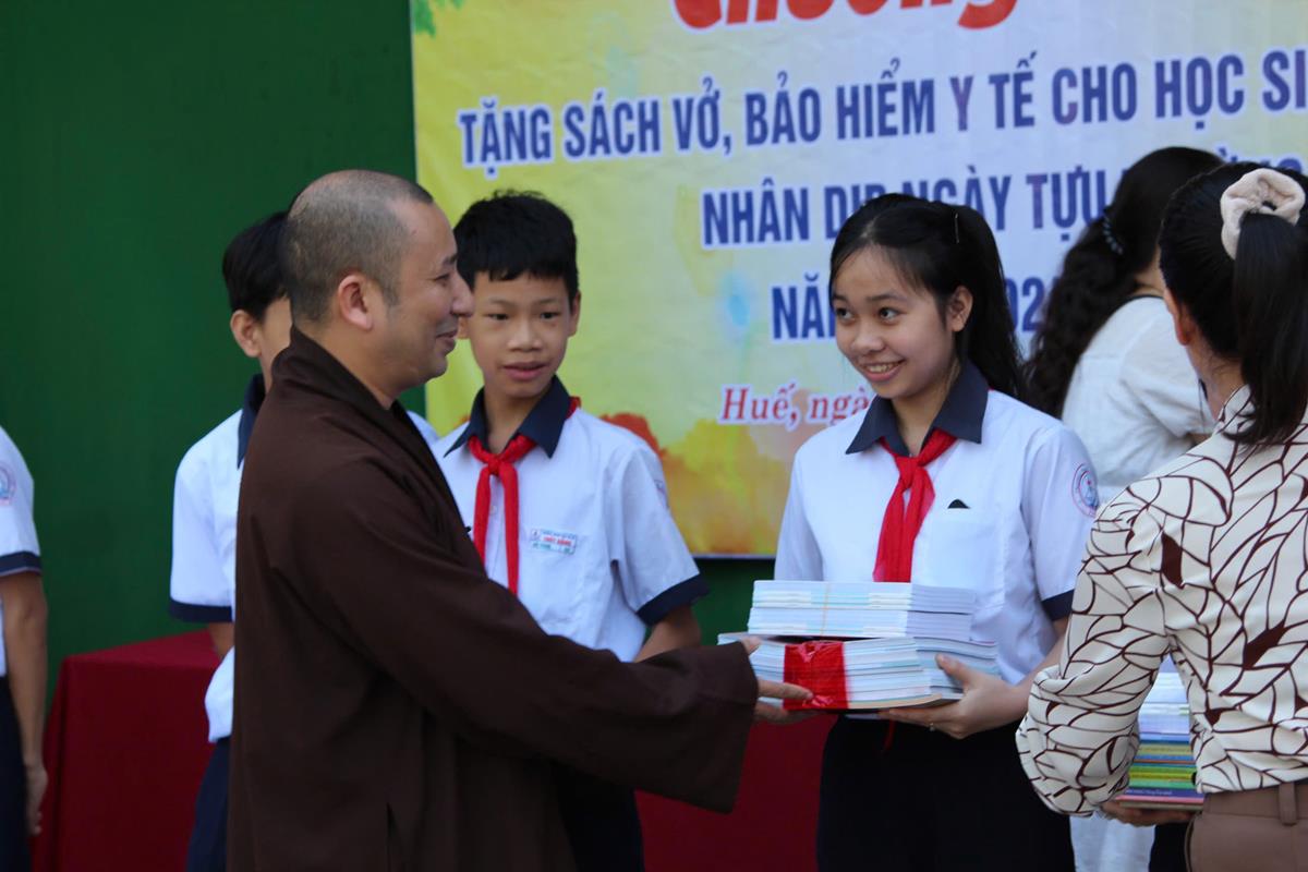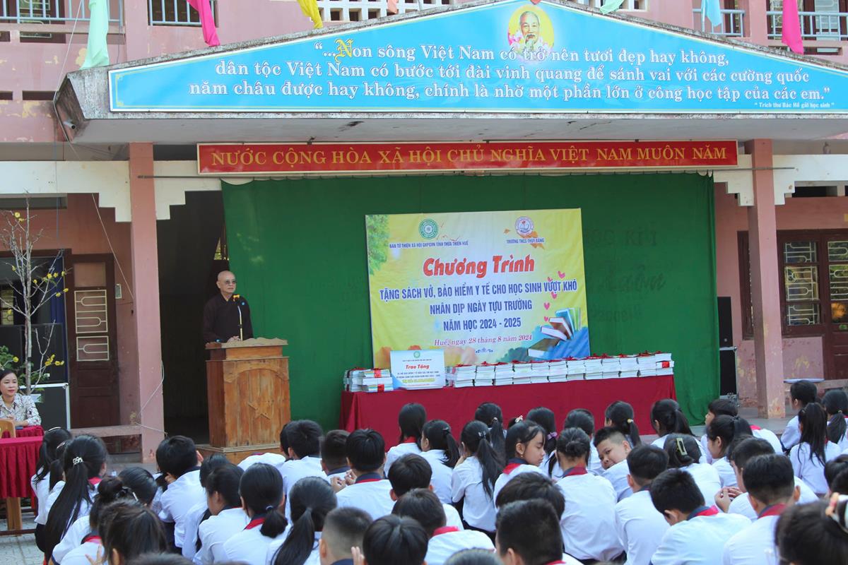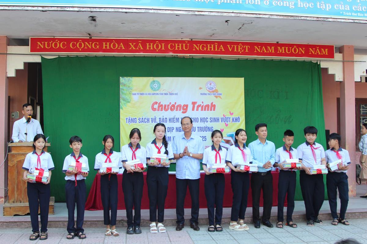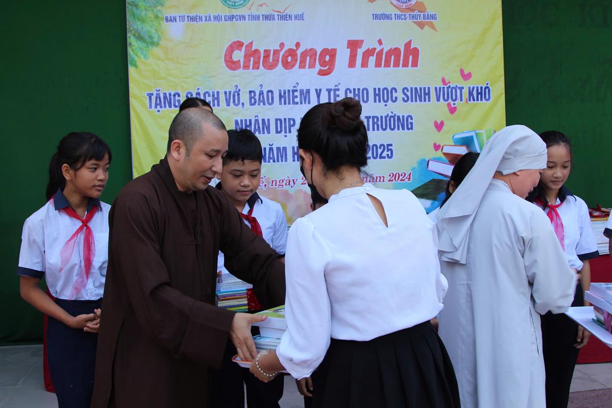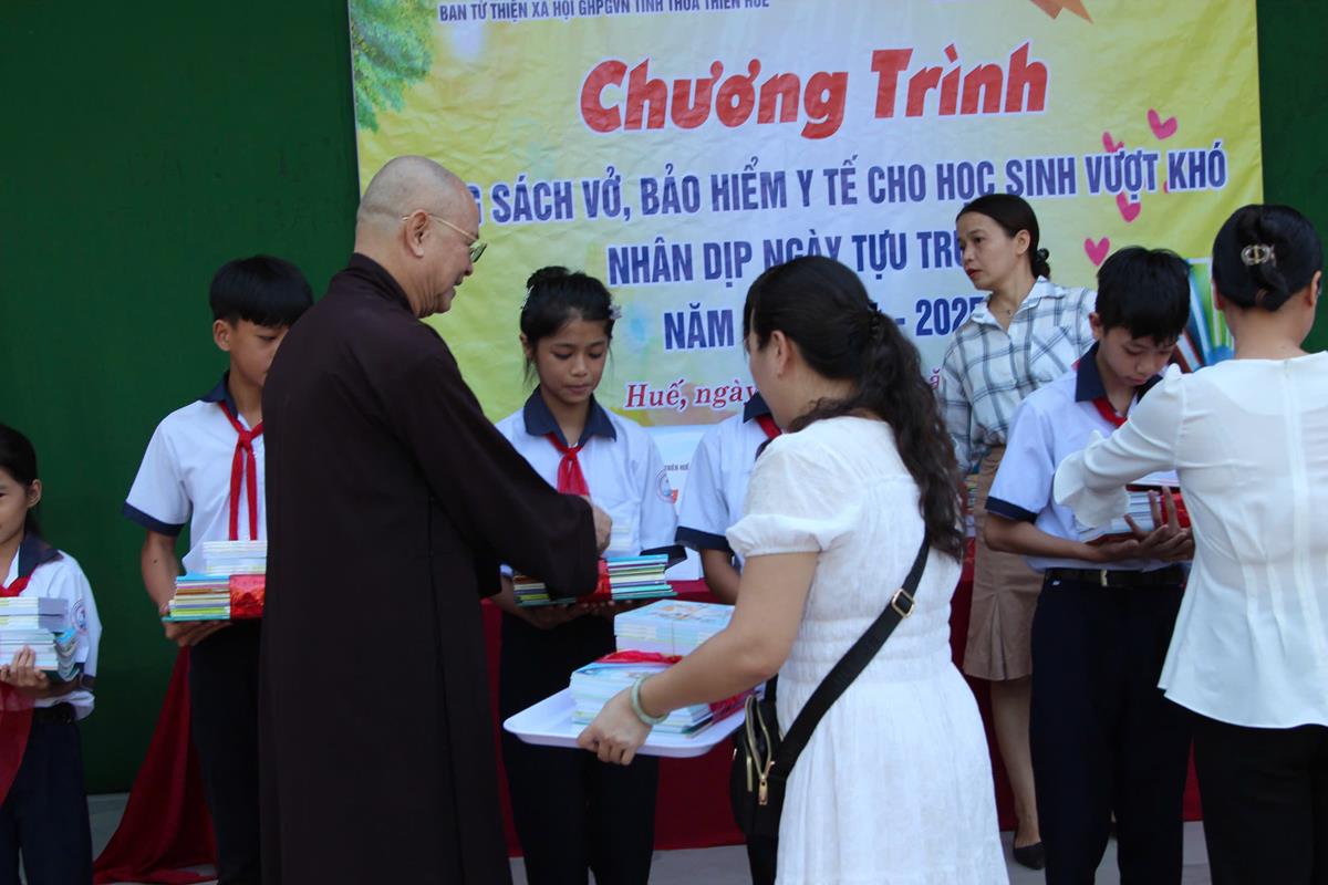 Chương trình diễn ra trong không khí hân hoan, phấn khởi của một năm học mới bắt đầu. Với mong muốn các em học sinh tiếp tục nỗ lực học tập chinh phục tri thức, Ban Từ thiện Xã hội đã trao 50 bộ sách giáo khoa, vở học tập cho 50 em học sinh có hoàn cảnh khó khăn trị giá 25 triệu đồng. Ngoài ra, Ban Từ thiện đã tặng 25 thẻ Bảo hiểm Y tế cho 25 em học sinh trị giá 22 triệu đồng.
