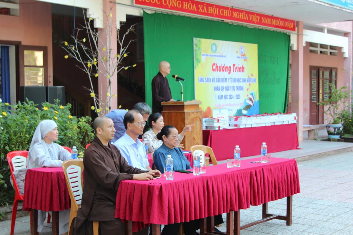 Đến dự chương trình, có Hòa thượng Thích Huệ Phước – Ủy viên Thường trực Hội đồng trị sự Giáo hội Phật giáo Việt Nam, Phó trưởng Ban Thường trực Ban Hoằng Pháp TW, Phó Trưởng Ban Thường trực Ban Trị sự Giáo hội Phật giáo Việt Nam tỉnh Thừa Thiên Huế; ông Hoàng Việt Trung – Giám đốc Trung tâm Bảo tồn di tích Cố đô Huế; Đại Đức Thích Huệ Trọng – Phó Trưởng Ban Thường trực Ban Từ thiện xã hội GHPGVN tỉnh Thừa Thiên Huế; Phật tử Nguyễn Thị Giá – pháp danh Nguyên Thanh; cô giáo Cao Thị Hồng Lam – Hiệu trưởng nhà trường.