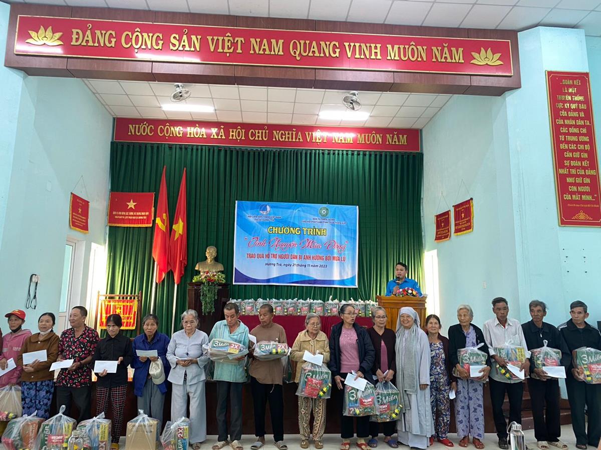 Tại thị xã Hương Trà, cùng đi với Đoàn có bà Phạm Thị Ngọc Huế – Thị ủy viên, Bí thư Thị đoàn; lãnh đạo cấp ủy, chính quyền phường Hương Văn, Hương Vân. Tại đây, Ban Từ thiện đã trao 200 suất quà cho bà con bao gồm nhu yếu phẩm và tiền mặt trị giá 350.000đ/xuất với tổng trị giá 70 triệu đồng.