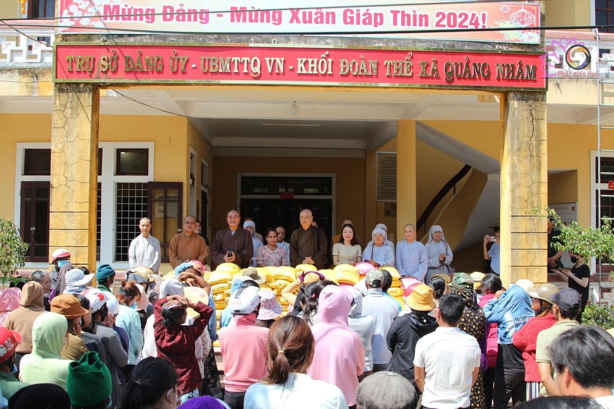 Trước đó, Ban Từ thiện Xã hội GHPGVN tỉnh cùng UBMTTQVN huyện A Lưới đã trao quà từ thiện đến bà con nghèo, có hoàn cảnh khó khăn thuộc xã Quảng Nhâm, huyện vùng cao A Lưới.