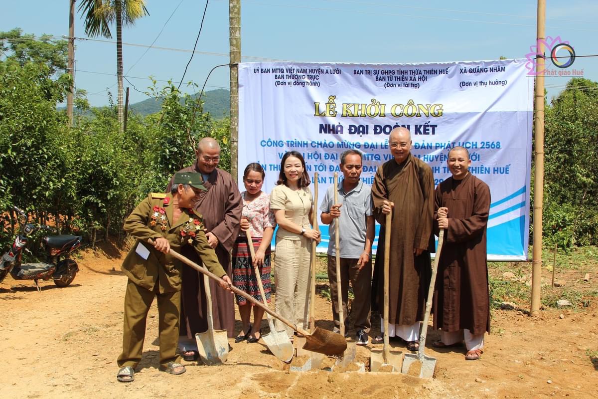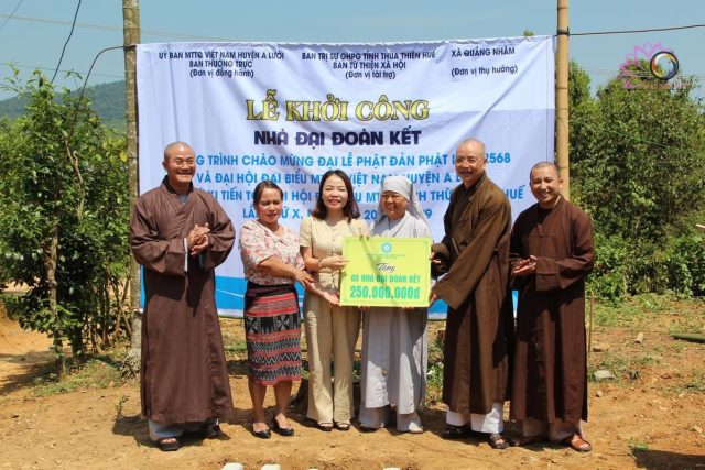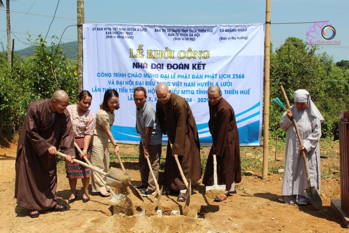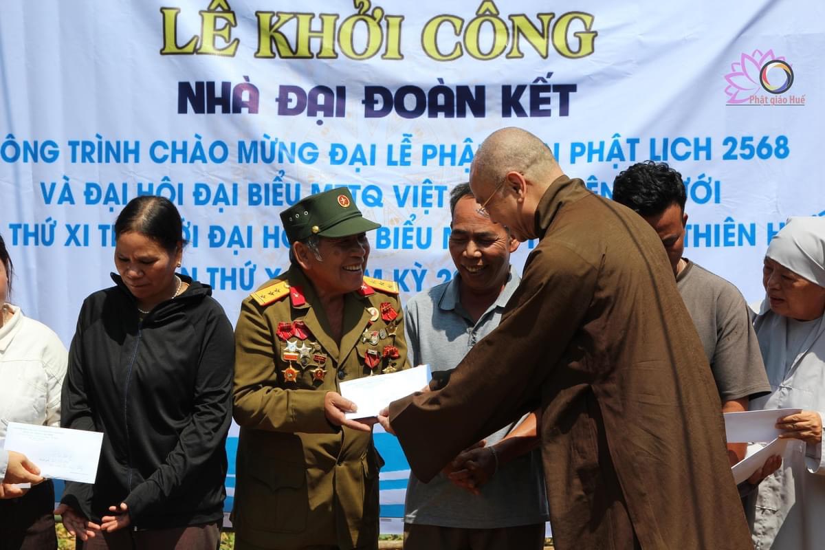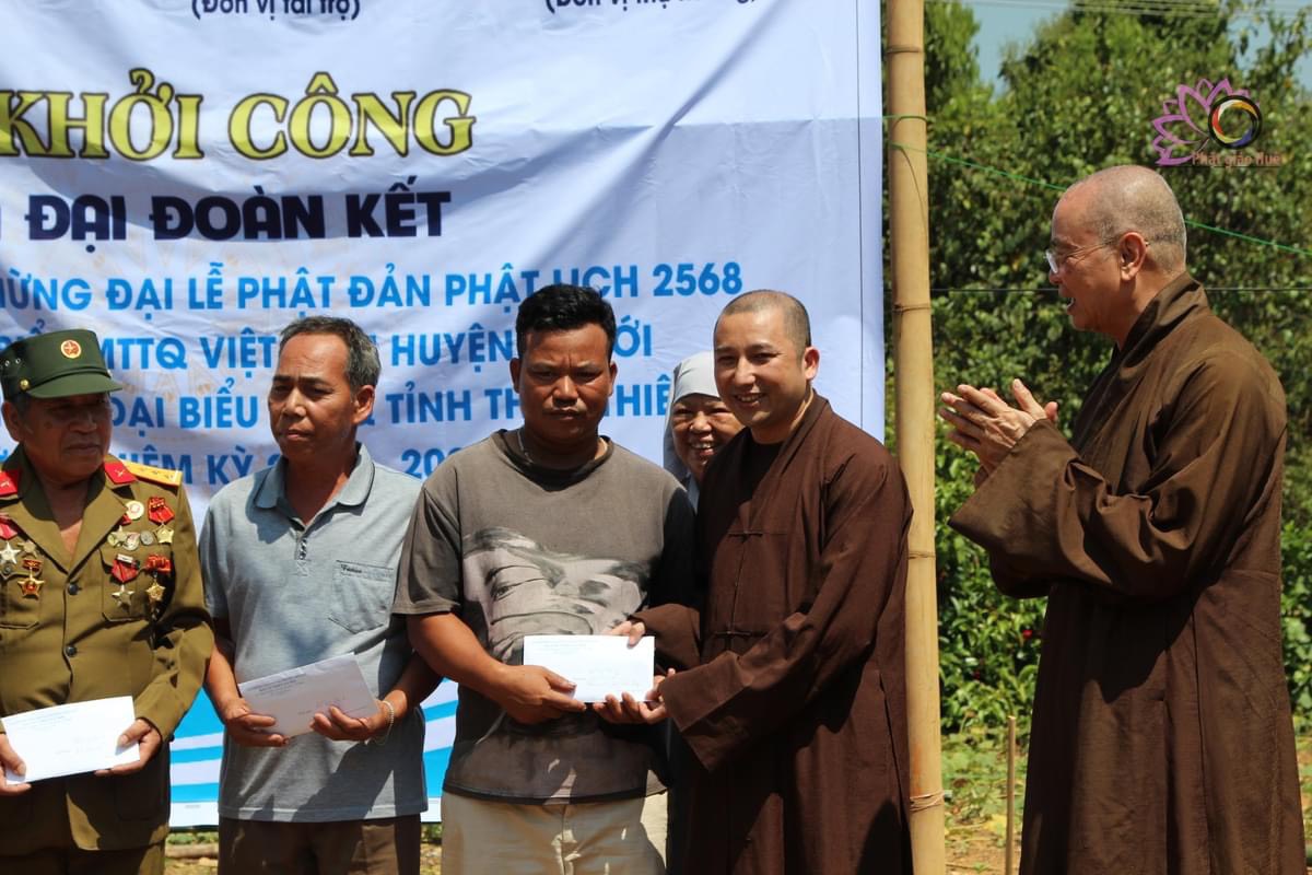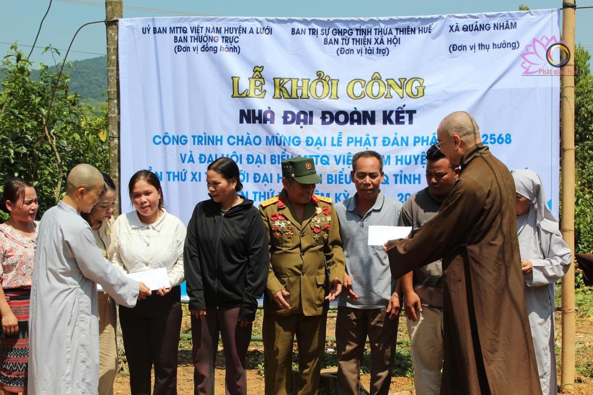 Tại buổi lễ, Ban Từ thiện Xã hội GHPGVN tỉnh và Ủy ban Mặt trận Tổ quốc huyện A Lưới đã trao hỗ trợ 250 triệu đồng đến 05 hộ gia đình trên địa bàn xã Quảng Nhâm để xây dựng nhà ở, đồng thời chư Tôn đức và quý khách mời đã làm lễ đặt đá, khởi công xây dựng nhà ông Hồ Văn Póc.