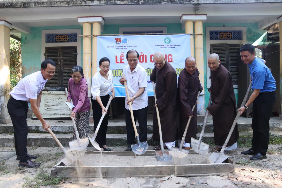 Sáng ngày 03/8/2024, Ban Từ thiện xã hội Giáo hội Phật giáo Việt Nam tỉnh Thừa Thiên Huế phối hợp với Ban Thường vụ Huyện đoàn, Hội Liên hiệp Thanh niên huyện Phú Vang đã tổ chức Lễ khởi công xây dựng nhà Nhân ái cho gia đình bà Đỗ Thị Hạnh, thuộc đối tượng gia đình hộ nghèo, có hoàn cảnh đặc biệt khó khăn tại Tổ dân phố Hòa Tây (thị trấn Phú Đa, huyện Phú Vang, tỉnh Thừa Thiên Huế).
