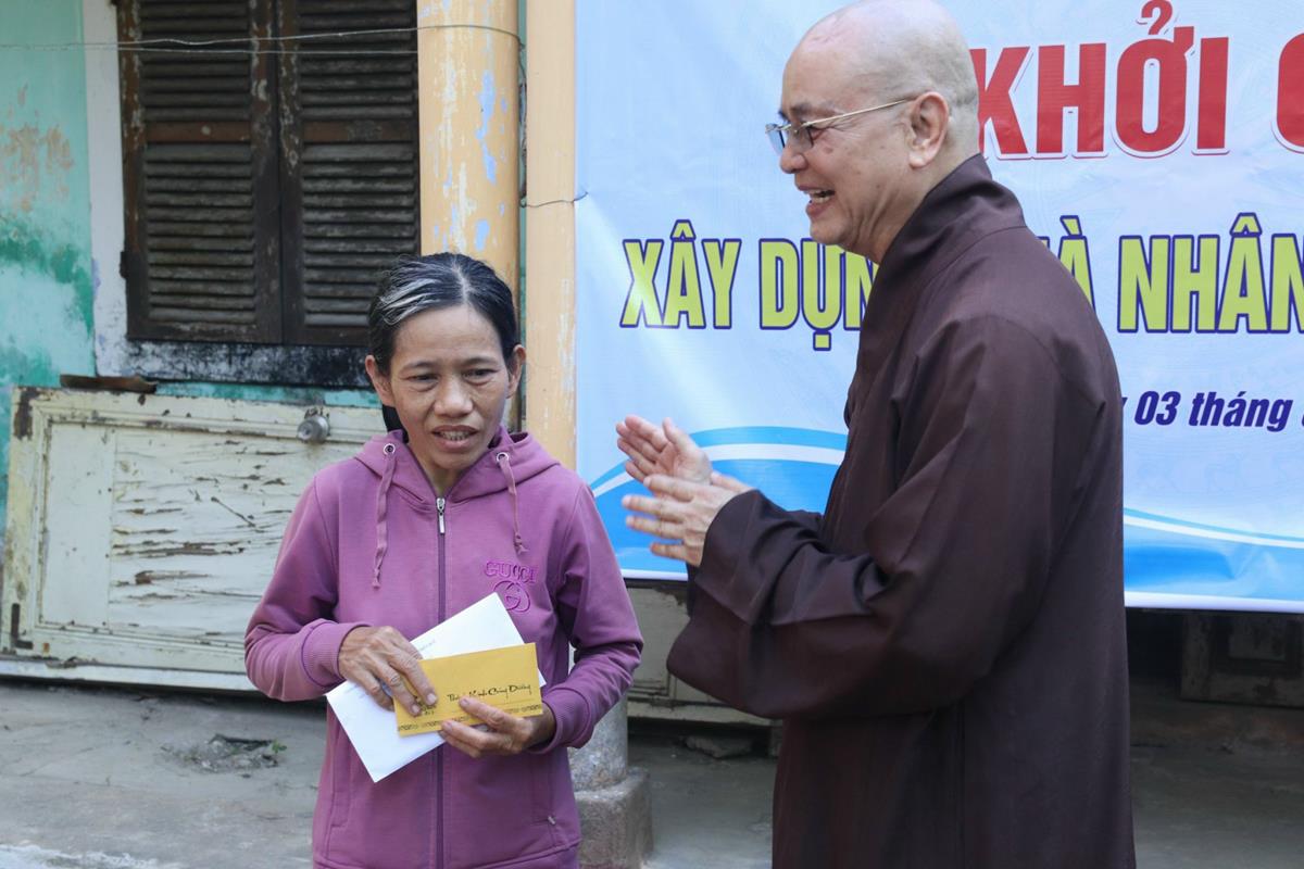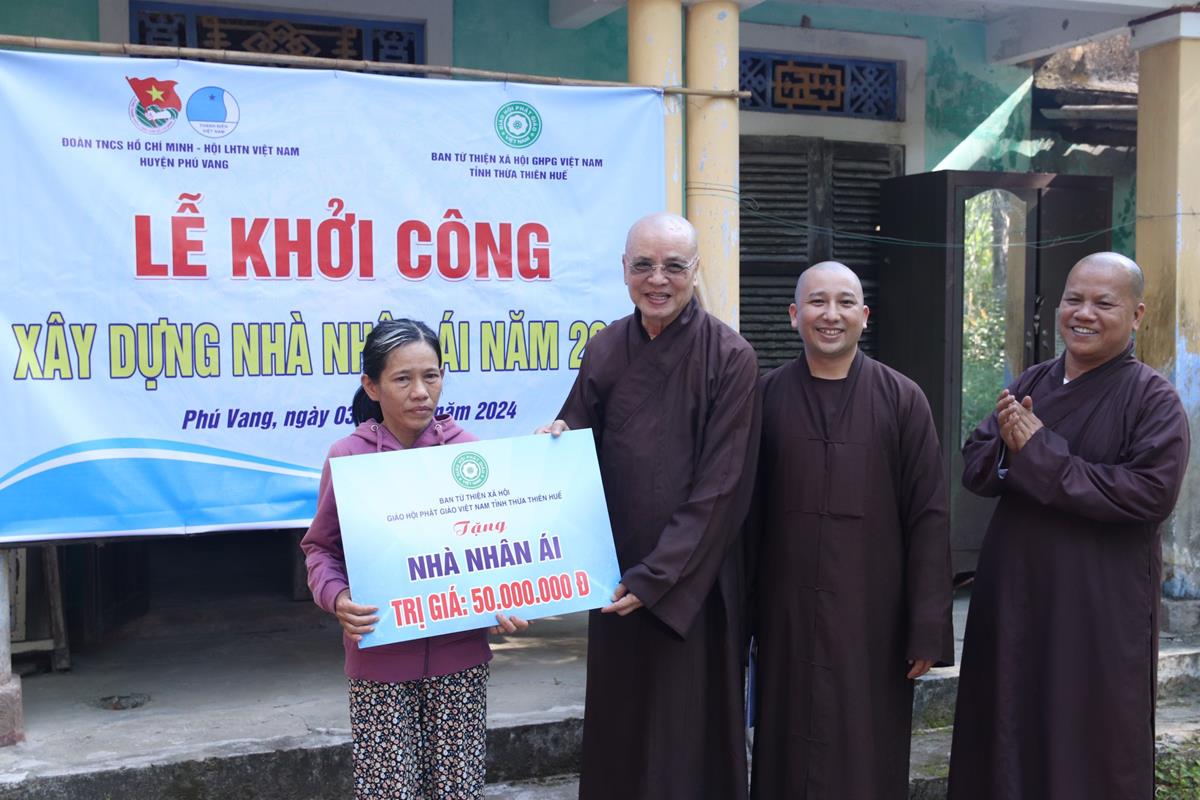 Tại buổi lễ, Đại diện Ban Từ thiện xã hội GHPGVN tỉnh Thừa Thiên Huế đã trao tặng số tiền xây dựng nhà Nhân ái cho gia đình bà Đỗ Thị Hạnh trị giá 50 triệu đồng.
