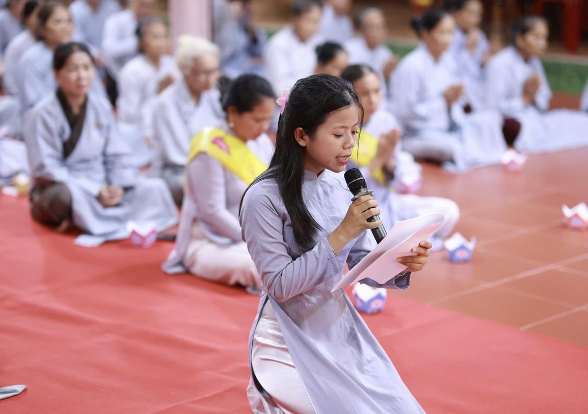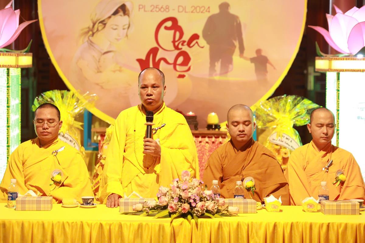 Sau khi Đại đức Thích Nhật Hậu thông qua chương trình, Đại đức Thích Thiền Như đã phát biểu khai mạc và nhấn mạnh: “Trong Kinh Tăng Chi Bộ, Đức Phật dạy cho mọi người biết rằng Cha Mẹ là hai đấng Phạm Thiên. Nếu chúng ta hiếu kính và phụng dưỡng Mẹ Cha chu toàn, thì chúng ta sẽ được an vui, mọi người khen ngợi, quy kính chúng ta. Hiếu thảo và chăm sóc Cha Mẹ luôn có hai phương diện: Vật chất và tinh thần. Về phương diện vật chất, khi Cha Mẹ tuổi già, để giúp Cha Mẹ sống an vui, hạnh phúc trong đời sống hàng ngày, người con ý thức sống bằng nghề nghiệp, công sức, và tài sản chân chính do chính mình tạo ra. Về phương diện tinh thần, bản thân người con phải biết nương tựa Tam Bảo và hành trì năm điều đức; sau đó, động viên, khuyến khích Cha Mẹ biết nương tựa ánh sáng Phật đà để sống đời sống hướng thiện và lợi ích cho tự thân, cho tha nhân ngay trong cuộc đời này”.