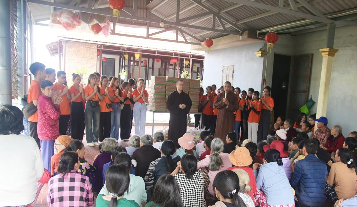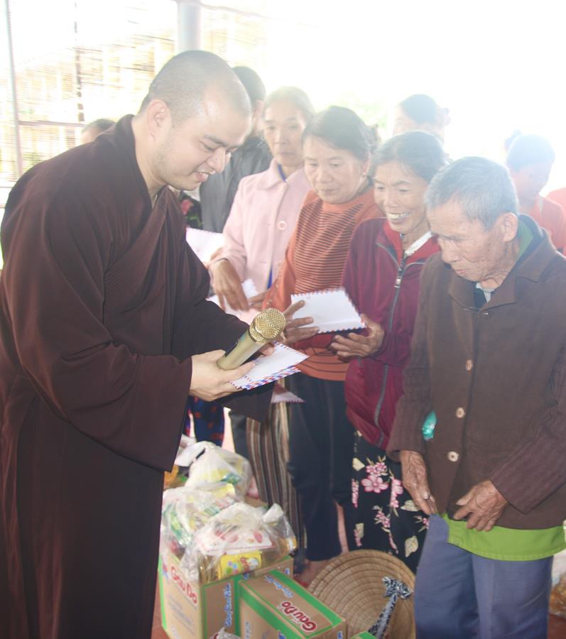 Tại các điểm trao quà, Đại đức Thích Thiền Như – Chánh thư ký Ban Hoằng pháp Tỉnh, Phó Thường trực Ban Điều hành chương trình Phật học Ứng dụng, Chủ nhiệm lớp Tuệ Trung đã phát biểu thăm hỏi động viên và chúc Tết đến bà con nhân dân, cũng như gửi gắm niềm tin yêu của lớp Tuệ Trung luôn dành tình cảm sâu sắc đến những hoàn cảnh khó khăn trong cuộc sống.