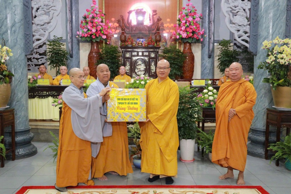 Phái đoàn BTS TP.HCM có sự hiện diện của HT. Giác Pháp – Ủy viên HĐTS GHPGVN – Phó Trưởng ban Ban Trị sự GHPGVN TP.HCM làm trưởng đoàn; tháp tùng đoàn có chư Tôn đức: TT. Thích Đạt Đức – Ủy viên HĐTS GHPGVN – Phó Trưởng ban Thường trực Ban Tăng sự GHPGVN TP.HCM; TT. Thích Phước Đạt – Ủy viên Thường trực HĐTS GHPGVN – Ủy viên Thường trực BTS GHPGVN TP.HCM đồng phó đoàn; TT. Thích Minh Bảo – Ủy viên Thường trực kiêm Phó Chánh Văn phòng BTS GHPGVN TP.HCM làm Thư ký đoàn.