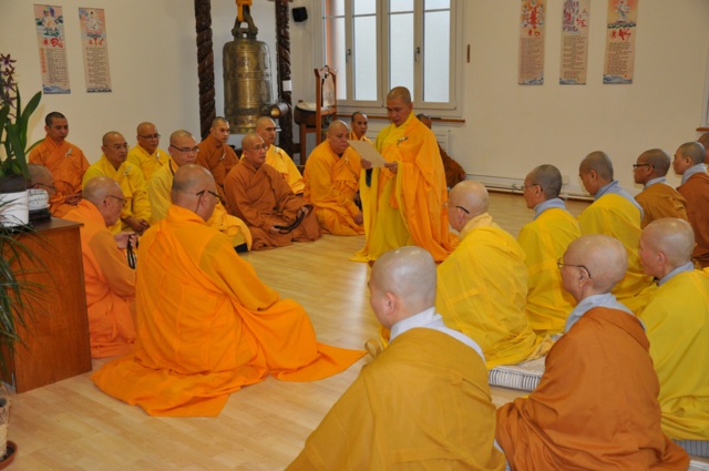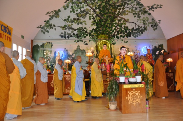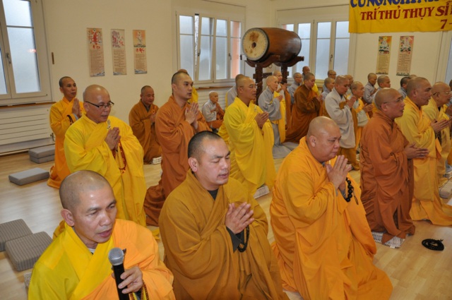 Trên có sự hiện diện và chứng minh cuả Hoà Thượng Thích Minh Tâm, Chủ tịch Hội đồng điều hành GHPGVNTN Âu châu, Hoà thượng Thích Tánh Thiệt, Phó Chủ tịch HĐĐH GHPGVNTN Âu châu, Hoà Thượng Thích Quảng Bình, cùng chư vị Thượng toạ trong Giáo Hội như Thượng Toạ Quảng Hiền, Minh Giác, Tâm Huệ, Thông Trí, Đồng Văn, Quảng Đạo … và quý chư Đại Đức trong giáo hội.