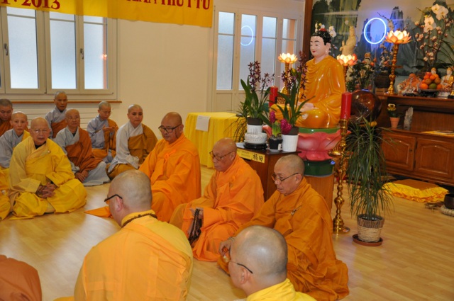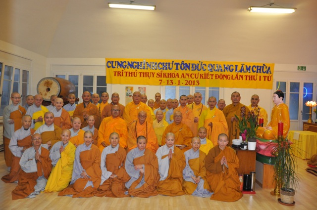 Về phiá ni chúng, có Ni trưởng Thích Nữ Như Tuấn, Ni sư Thích Nữ Như Minh, TN Minh Hiếu, TN Diệu Trạm cùng chưtôn đức Ni từ các tự viện trong Âu châu đồng câu hội về tham dự khoá kiết đông.
