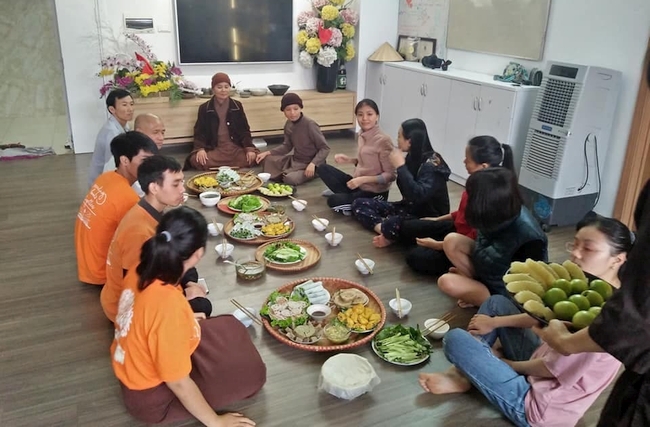 Vì là tất niên nên phải là tiệc. Tuy nhiên trước bữa tiệc là những chia sẻ về kết quả khóa thiền 50 ngày. Người nhà của em Hương ai cũng khen. Tất cả đều nói rằng em Hương béo lên, xinh hơn, khỏe ra, mặt sáng, cười tươi,… Anh Quang là chồng Hương không thể không khen vợ mình. Hơn nữa nhìn thấy anh Quang vui vẻ, tiếp đón khách niềm nở, nhảy cả vào bếp bê món ra, tiếp đồ ăn cho các đạo hữu là biết ngay anh hạnh phúc thế nào.