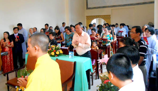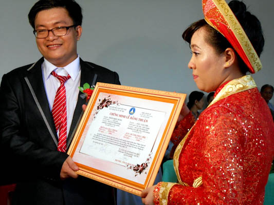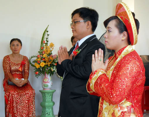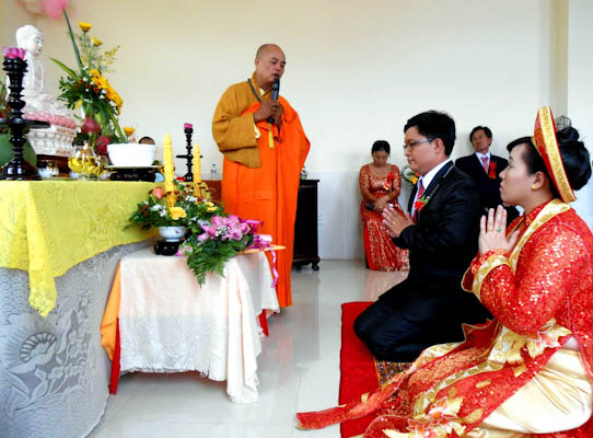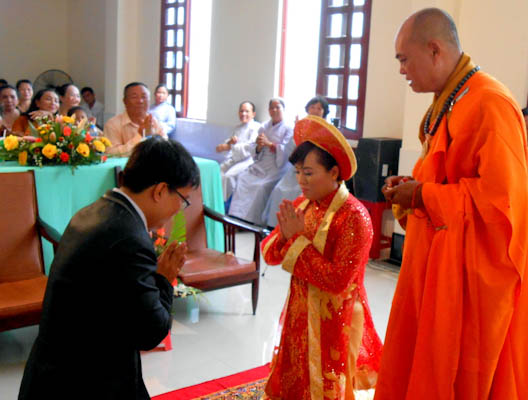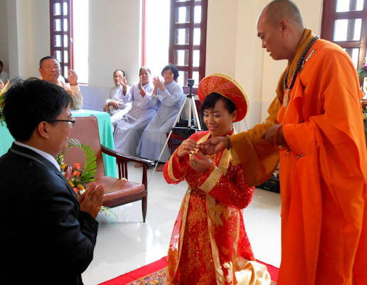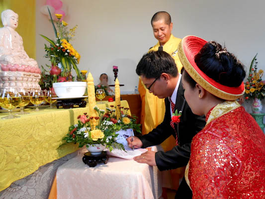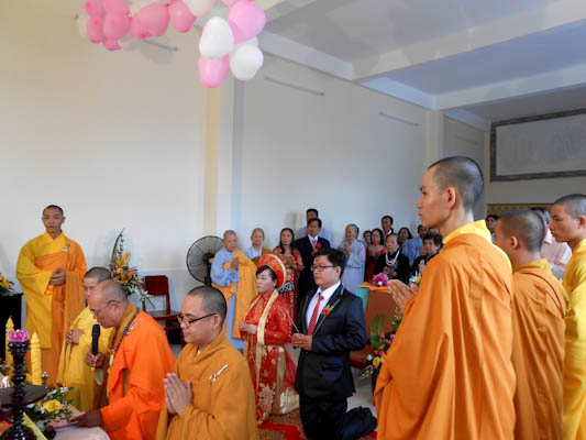 Tại buổi lễ, Tân lang và Tân nương đọc lời phát nguyện trước sự chứng minh của Chư tôn Thiền đức và bà con hai họ.