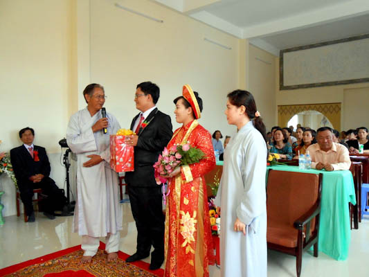 Ngoải ra, đôi Tân lang và Tân nương cũng đã nhận được những lời chúc mừng và quà tặng của Chư tôn đức, của đôi vợ chồng Phật tử gương mẫu đúng nghĩa trong việc xây đắp hạnh phúc gia đình và mẫu mực trong các mối quan hệ với người chung quanh.