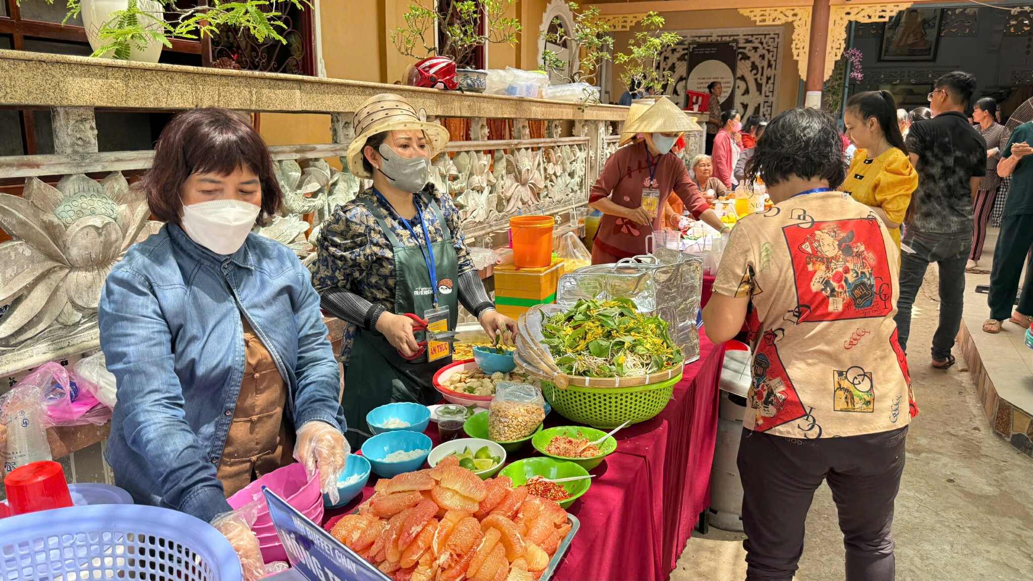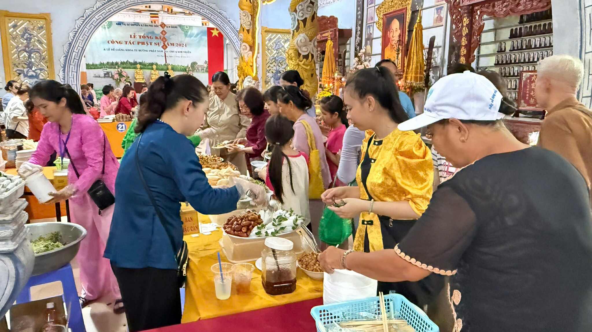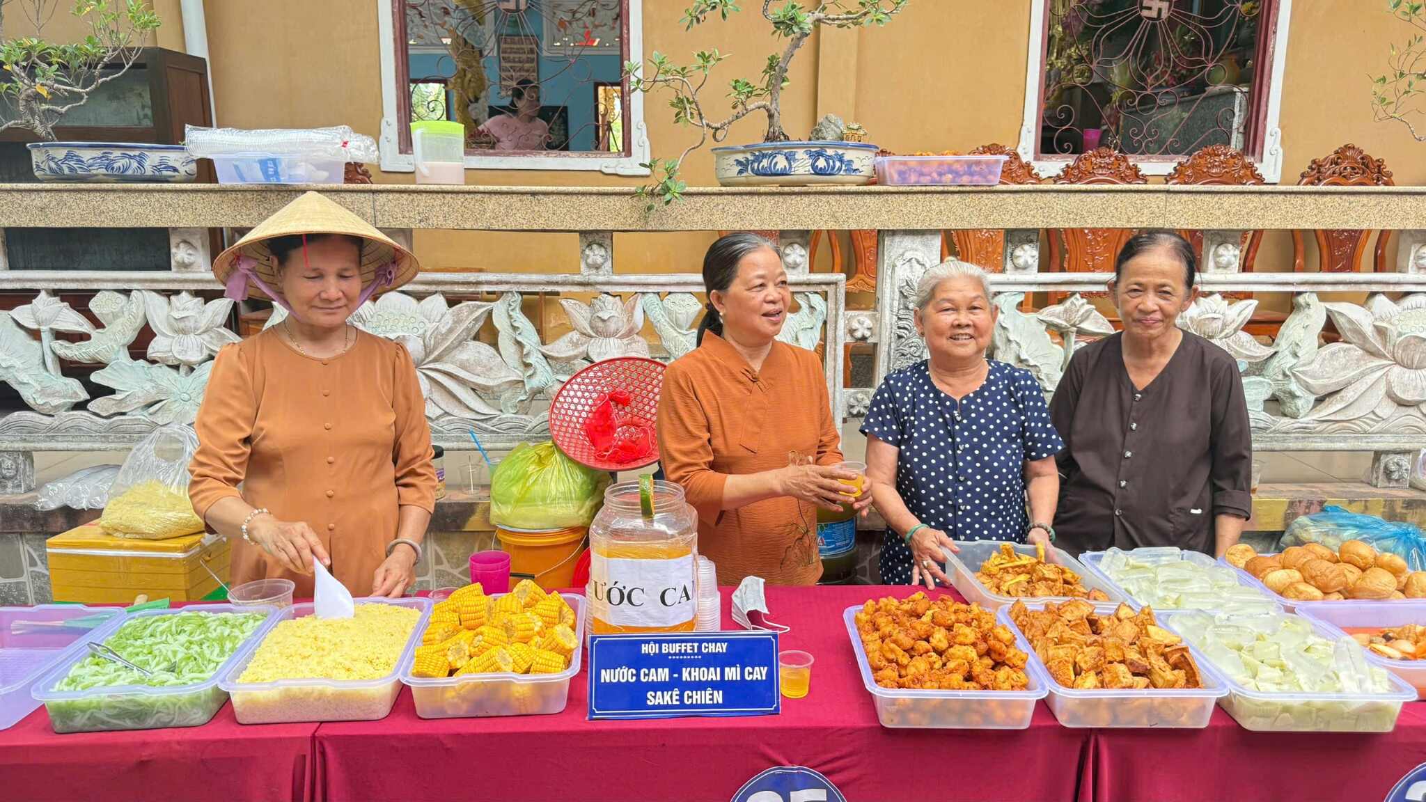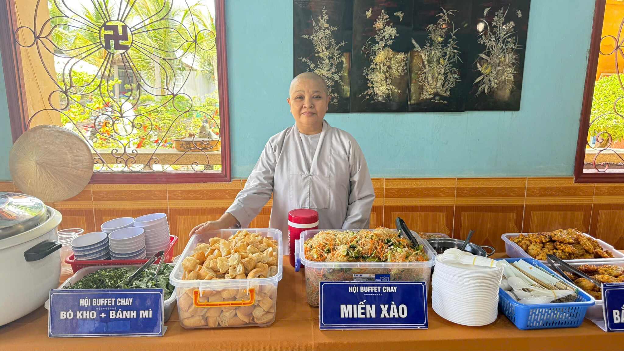 Buổi tiệc buffet chay tổ chức với hơn 100 món chay do Phật tử đạo tràng chùa Vạn Thọ, Pháp Hoa, chùa Linh Quang, chùa Kim Thiền, Ni Viện Pháp Hoa… tự làm, phát tâm ủng hộ chương trình. Toàn bộ số tiền ủng hộ thông qua việc mua vé buffet chay sẽ được dùng để hoàn thiện các hạng mục xây dựng công trình khuôn viên tôn tượng Đức Phật Di Lặc mới được xây dựng hoàn thiện xong.