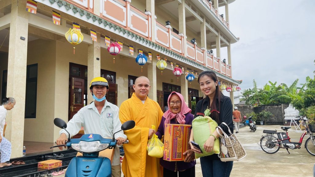 Trước khi trao quà, ĐĐ. Thích Huệ Đạo đã bày tỏ lòng tri ân sâu sắc đến Tam Bảo, quý mạnh thường quân đã chung sức chung lòng hùn phước để tạo nên ngôi Tăng Xá này. Đồng thời có lời chúc sức khoẻ và an lành nhất đến với quý bà con nhân cuối mùa Trung Thu 2023 năm nay. Rất mong những phần quà này sẽ là nguồn động viên tích cực giúp bà con vượt qua khó khăn hơn trong cuộc sống.