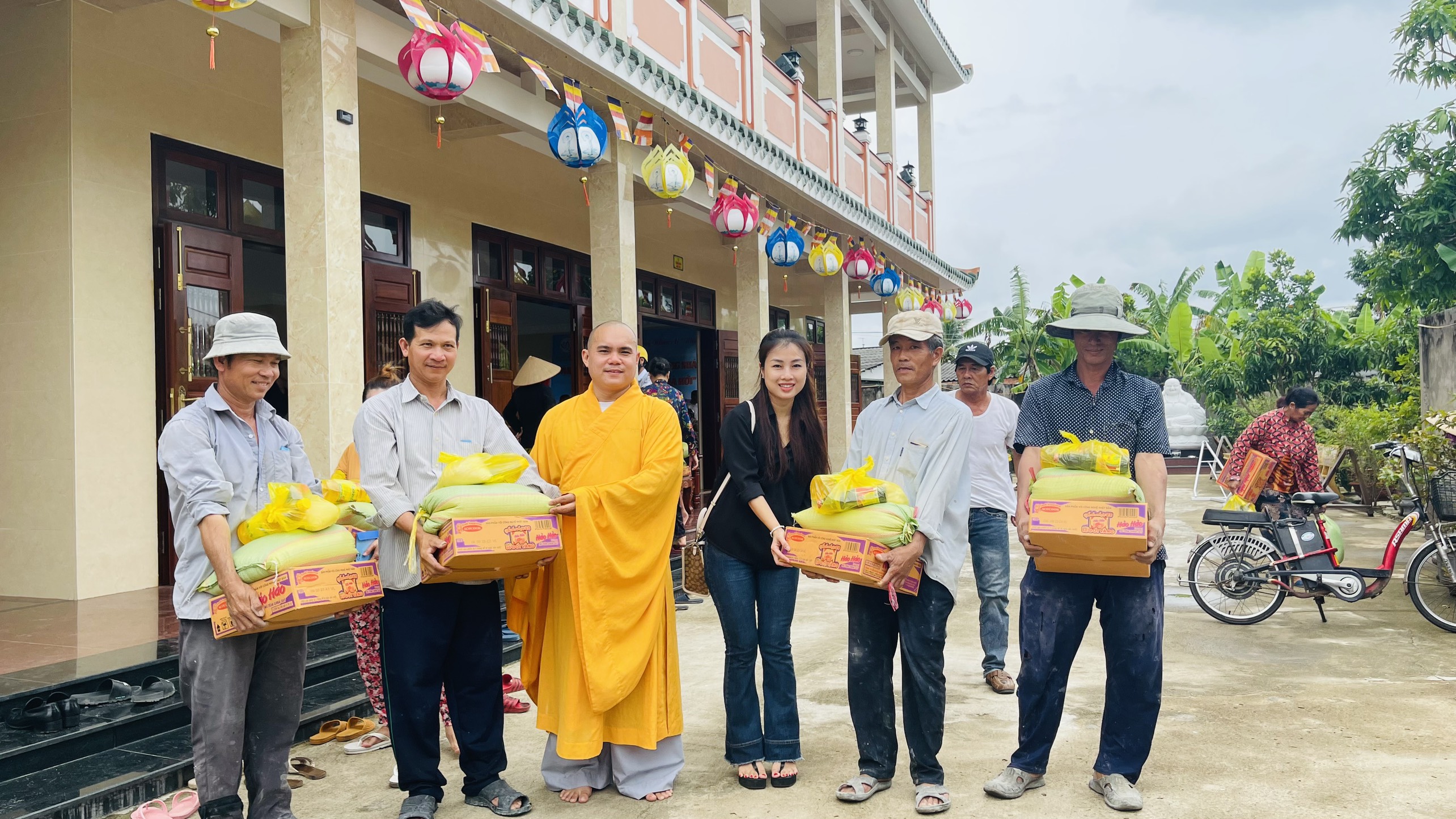 PTVN – Trong tinh thần “Tri ân Tam Bảo – Phụng sự chúng sanh là thiết thực cúng dường chư Phật”, sáng ngày 16/10/2023 (nhằm 02/09/Quý Mão), ĐĐ. Thích Huệ Đạo – Phó trụ trì chùa Thiên Nguyên (Tân Hoà, Gò Công Đông, Tiền Giang) đã trao tặng 100 phần quà có tổng trị giá 60 triệu đồng, hỗ trợ bà con khó khăn tại địa phương. Mỗi phần quà trị giá 600.000 đ gồm: 10 ký gạo, 1 thùng mì gói, 1 bao thư và nhu yếu phẩm.