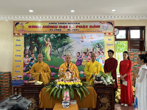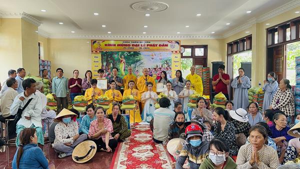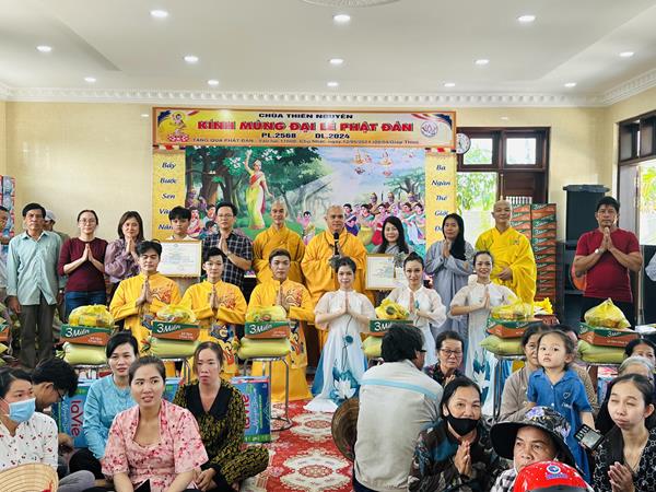 Buổi lễ dưới sự chứng minh của TT. Thích Thiện Đắc – trụ trì chùa Thiên Nguyên, anh Nguyễn Văn Cường – chủ tịch MTTQ thị trấn Tân Hoà, Phật tử Ngọc Thiện – nhà tài trợ chính chương trình, Phật tử Diệu Hà cùng với sự có mặt của các ca sĩ, nghệ sĩ TP. HCM cùng đông đảo quý bà con, đồng bào Phật tử tham dự.