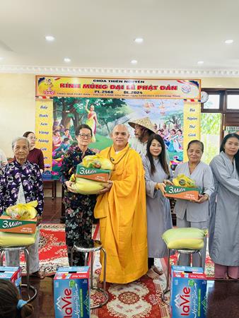 PTVN – Trong niềm vui chung của nhân loại hướng về ngày Đản Sanh của Đức Từ Phụ Thích Ca Mâu Ni”, sáng ngày 12/05/2024 (nhằm 05/04/Giáp Thìn), ĐĐ. Thích Huệ Đạo – Phó trụ trì chùa Thiên Nguyên (Tân Hoà, Gò Công Đông, Tiền Giang) đã trao tặng 120 phần quà có tổng trị giá 48 triệu đồng hỗ trợ bà con khó khăn tại địa phương. Mỗi phần quà trị giá 400.000 đ gồm: gạo, mì gói, nước suối và nhu yếu phẩm.