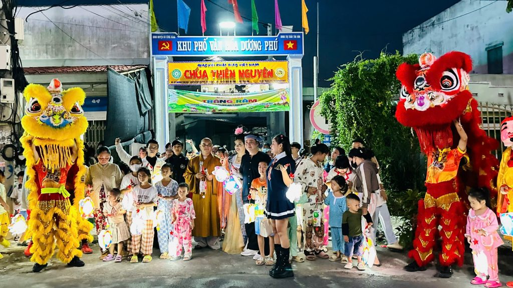 Buổi lễ dưới sự chứng minh của TT. Thích Thiện Đắc – Trụ trì chùa Thiên Nguyên, anh Nguyễn Văn Cường – Chủ tịch MTTQ thị trấn Tân Hoà, anh Nguyễn Văn Hiếu – Trưởng khu phố Dương Phú cùng với sự có mặt của quý Phật tử, các ca sĩ, nghệ sĩ, TP. HCM, đông đảo các bé thiếu nhi, các em học sinh và quý phụ huynh tham dự.