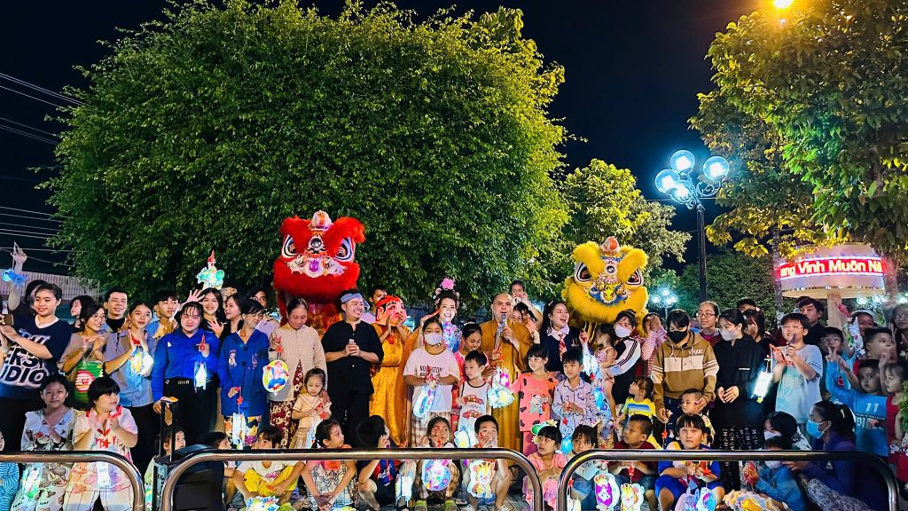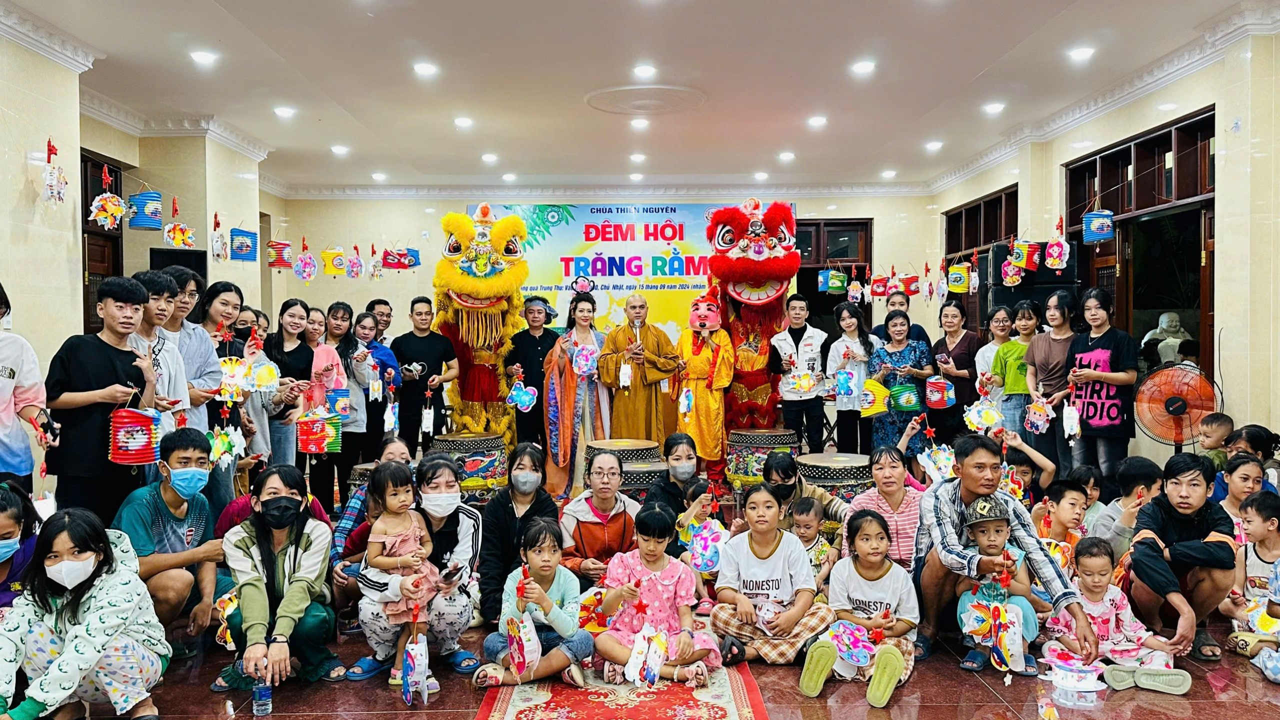 Trước khi trao quà, ĐĐ. Thích Huệ Đạo đã có vài lời vấn an sức khoẻ quý phụ huynh, chúc các bé thiếu nhi chăm ngoan học giỏi và khai mạc “Đêm Hội Trăng Rằm 2024”. Sau đó là cử hành nghi thức “Rước đèn Trung thu” và Văn nghệ “Chú Cuội Chị Hằng”. Buổi lễ đã thu hút các bé tham gia trả lời câu hỏi và nhận thưởng trong không khí vui tươi nhộn nhịp, tạo cảm giác thoải mái để bước vào năm học mới. Cuối cùng là chương trình múa bế mạc và trao quà!