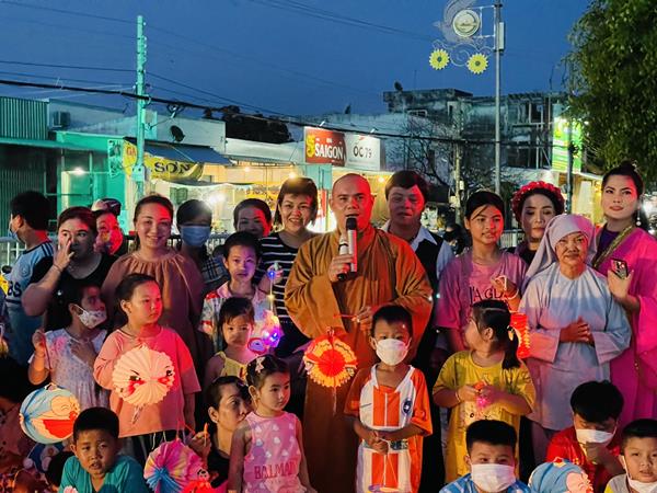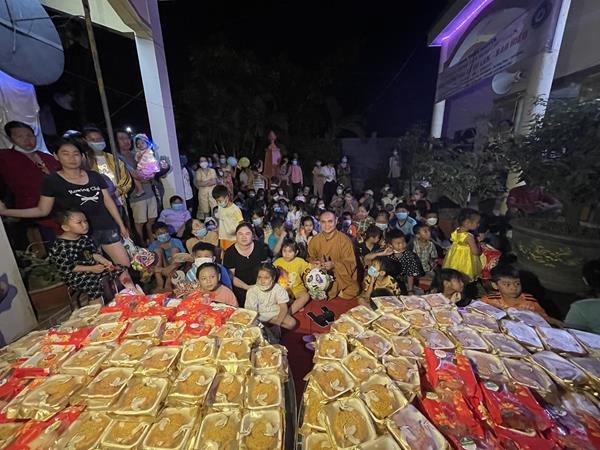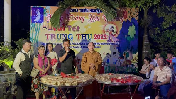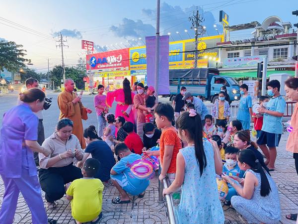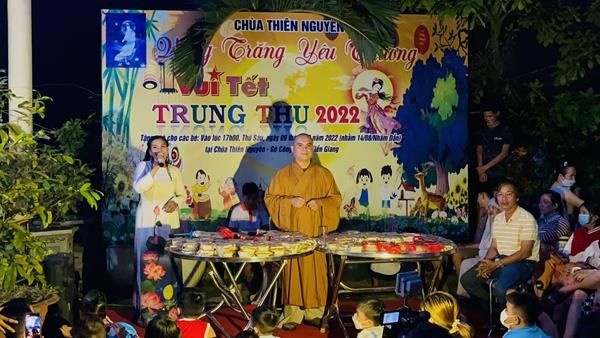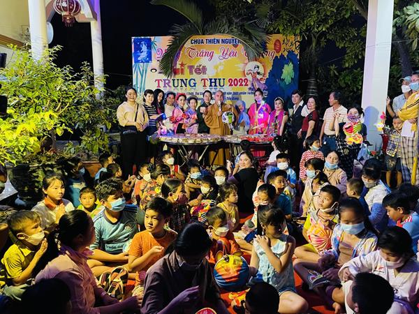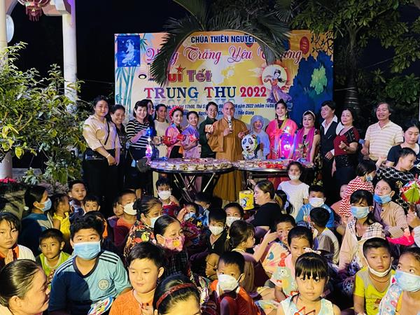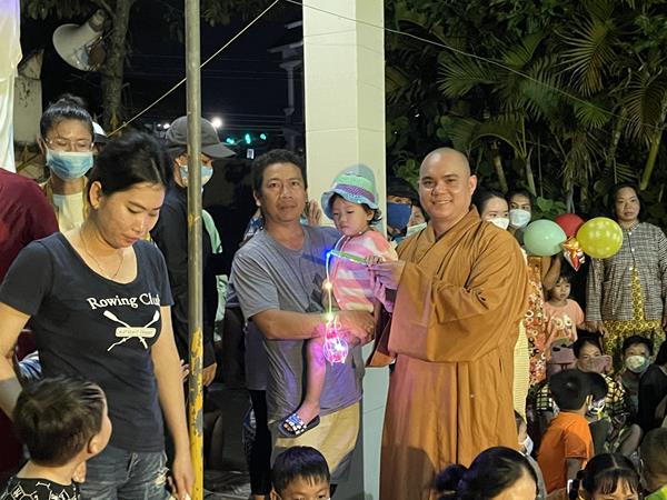PTVN – Lễ hội Trăng Rằm là nét đặc trưng riêng dành cho các bé thiếu nhi nhân dịp Tết Trung thu hằng năm. Trong tinh thần “Tết Đoàn viên”, tối ngày 09/09/2022 (nhằm 14/8/Nhâm Dần), ĐĐ. Thích Huệ Đạo – Phó trụ trì chùa Thiên Nguyên (Tân Hoà, Gò Công Đông, Tiền Giang) đã trao tặng 300 phần quà trung thu trị giá 15 triệu đồng cho các bé thiếu nhi tại địa phương. Mỗi phần quà gồm: lồng đèn và bánh trung thu.