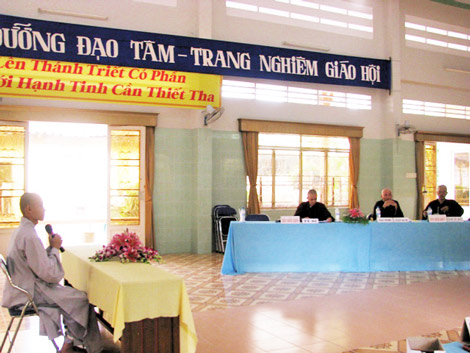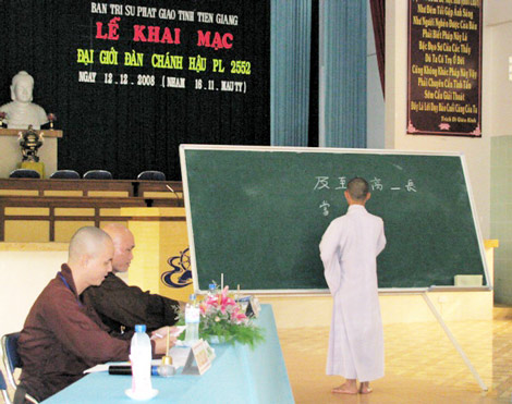 Cuộc thi khảo hạch Giới đàn Chánh Hậu 2008 do TT. Thích Hoằng Đức – Hiệu phó trường TCPH tỉnh Tiền Giang làm Chánh Chủ Khảo cùng với 15 vị Giám khảo khác trong Ban Giảng Huấn trường TCPH tỉnh.