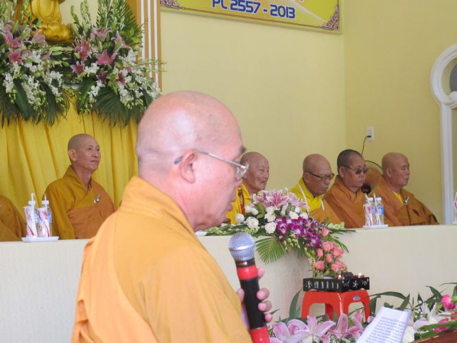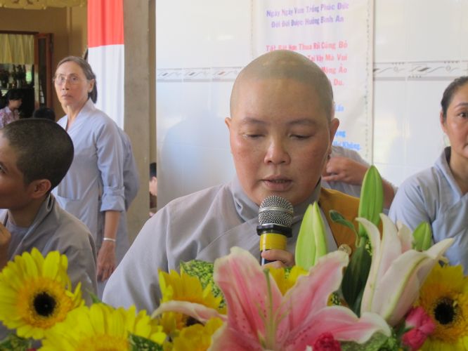 Trong lời phát biểu của mình, HT. Thích Hạnh Trân chứng minh buổi lễ đã hết lời tán dương việc làm đầy ý nghĩa này của Thượng tọa trụ trì cũng như sự phát tâm hỷ cúng để báo hiếu song thân của hàng Phật tử nơi đây.