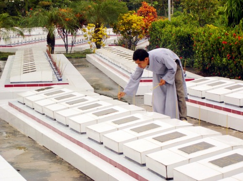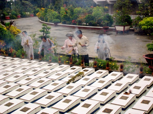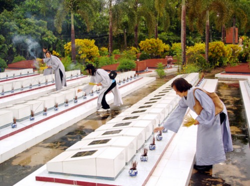 Sau lễ cầu siêu, các Phật tử chia nhau đi thắp hương cho hơn 6.000 ngôi mộ tại nghĩa trang.