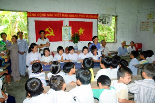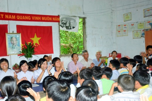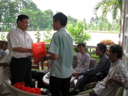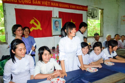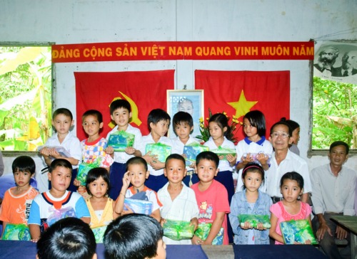 Trước lễ cầu siêu một ngày (24/07/2010), đạo tràng Phật Hóa tổ chức buổi tặng quà cho 150 em học sinh có hoàn cảnh khó khăn tại Điểm Sinh Hoạt Văn Hóa ấp Đồng – xã Trung An – TP.Mỹ Tho với số tiền trên 5 triệu đồng.