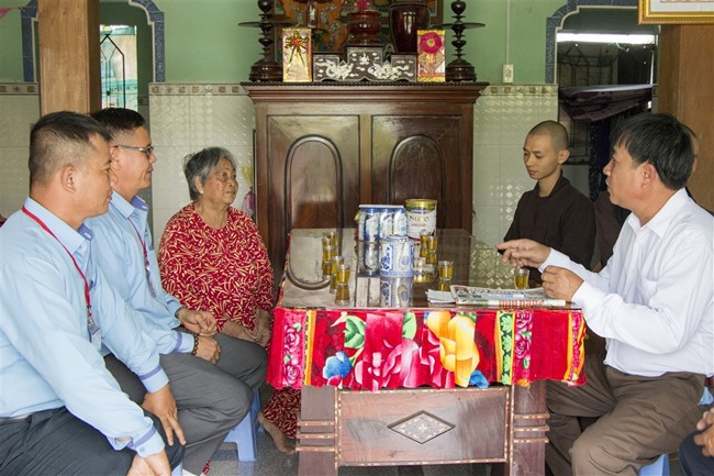 Tiếp theo, phật tử Trí Thành đã tận tay trao cho Mẹ một phần quà tết cùng số tiền phụng dưỡng là 6 triệu đồng. Trước khi ra về Đoàn không quên dành cho Mẹ và gia đình những lời chúc tết thật cảm động.