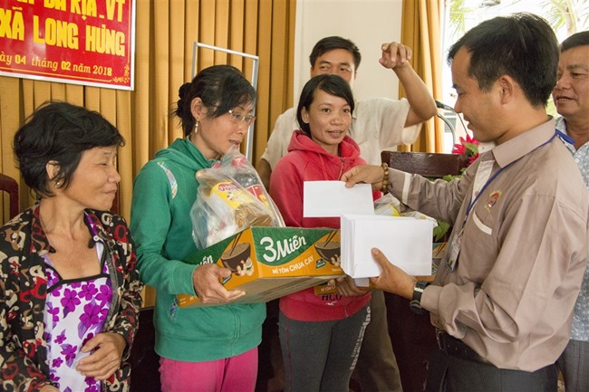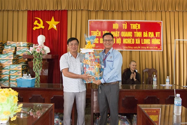 Theo đó, 100 phần quà tết cho các hộ nghèo trong xã Long Hưng được đại diện chính quyền và Hội từ thiện trao tận tay cho bà con. Mỗi phần quà trị giá 500.000 VNĐ, bao gồm 10kg gạo, 1 thùng mì gói cùng các nhu yếu phẩm khác và một bao thư tiền mặt 200.000 đồng.