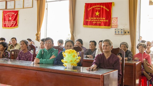 Dịp này, đại diện lãnh đạo  chính quyền địa phương đã gửi lời chúc tết và cảm ơn đến Hội đã luôn quan tâm, chăm sóc phụng dưỡng Mẹ giúp Mẹ được sống vui, sống khỏe, được chăm sóc chu đáo cả về vật chất và tinh thần.