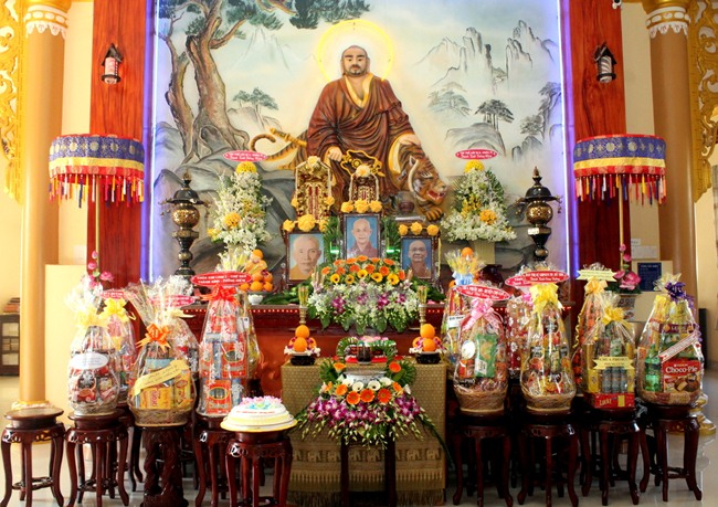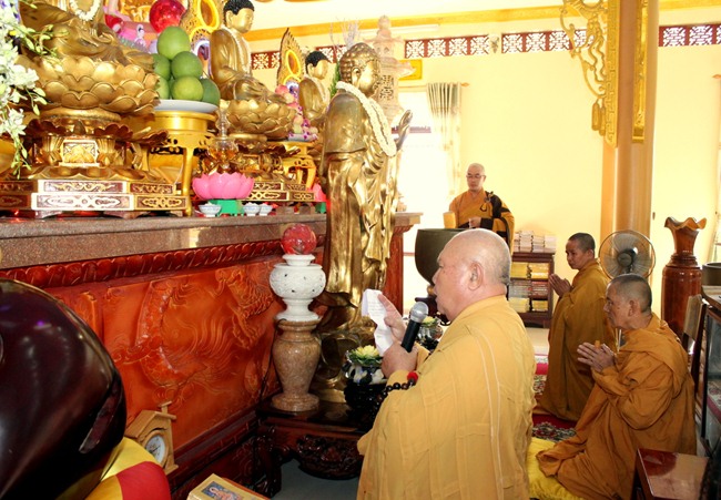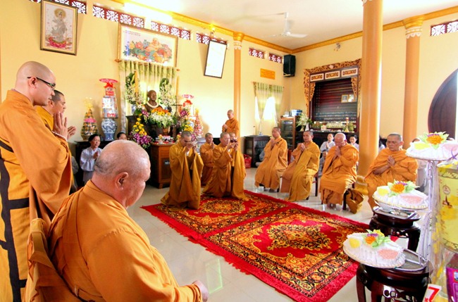 Tại Chánh Điện, sau Lễ niêm hương bạch Phật, cúng ngọ, Chư tôn đức đã quang lâm Tổ đường, đảnh lễ, dâng hương tưởng niệm cố HT Thích Hoằng Từ – một bậc Thầy mô phạm Lãnh đạo rất đáng kính ngưỡng, quy phục trong ngành Giáo dục của tỉnh nhà. Ngài là một tấm gương sáng, rất nhiệt huyết đối với sự nghiệp đào tạo Tăng tài và un đúc tinh thần tu nhân học Phật của các phật tử.