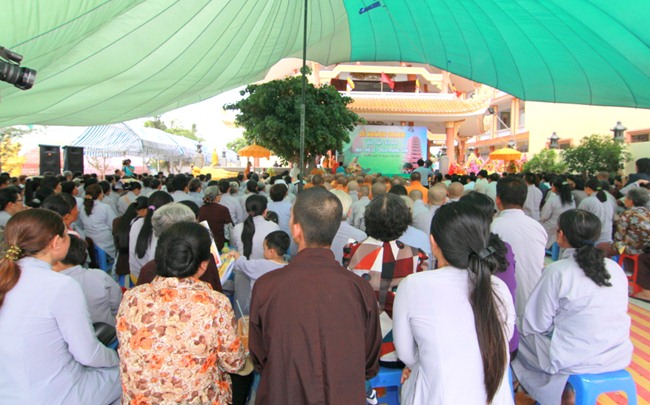 Với sự quang lâm chứng minh của Chư tôn Giáo phẩm lãnh đạo GHPGVN tỉnh Tiền Giang, cùng lãnh đạo Chính quyền tỉnh – thành phố Mỹ Tho và đông đảo bà con nhân dân phật tử gần xa.