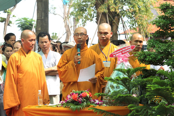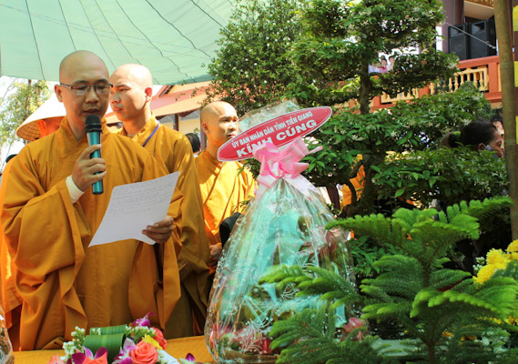 Sau phần tuyên bố lý do và giới thiệu thành phần tham dự, TT Thích Thông Phương – Phó Ban Quản trị Thiền phái Trúc Lâm Yên Tử, trong bài Diễn văn đã trình bày quá trình xây dựng phát triển Thiền viện mà khởi đầu, trải qua gần 17 tháng thi công, đến nay đã cơ bản hoàn thành 5 hạng mục, đó là: Chánh điện, Lầu chuông, Gác trống, Nhà khách, Khu tịnh thất Hòa thượng. Công trình xây dựng này nhằm đáp ứng tâm nguyện của Hòa Thượng Tôn Sư thượng Thanh hạ Từ – Tông chủ của Thiền phái Trúc Lâm thế kỷ 20 và mong mỏi của Phật tử gần xa. Nhân đây, Thượng tọa cũng nhấn mạnh về ý nghĩa và công đức tạc tượng xây chùa. Được biết, tượng Phật Bổn Sư được tạc bằng đá ngọc cao 4,5 mét, nặng trên 30 tấn, do các nghệ nhân Myanmar chế tác. Theo kế hoạch, sau khi hoàn thành 5 hạng mục đầu tiên, Thiền viện sẽ khởi công tiếp xây dựng nhà Tổ, và còn lại các hạng mục Tăng đường, trai đường, khu nhà bếp, khu nhà khách nữ, cổng Tam quan nếu đủ duyên hoàn thành thì sẽ khánh thành giai đoạn I. Sau đó tiếp tục đến các hạng mục còn lại.