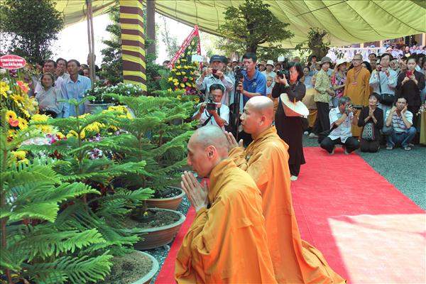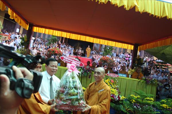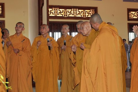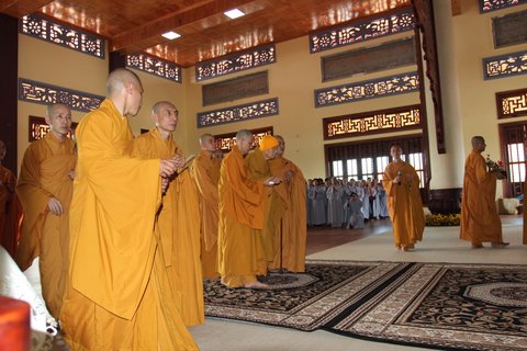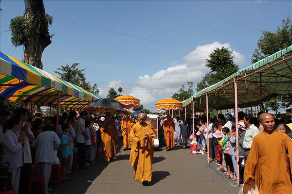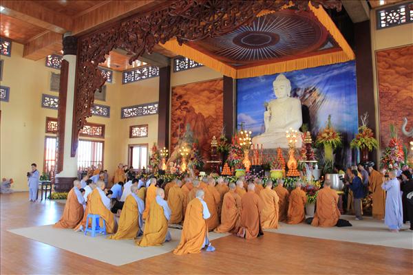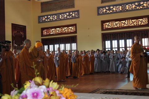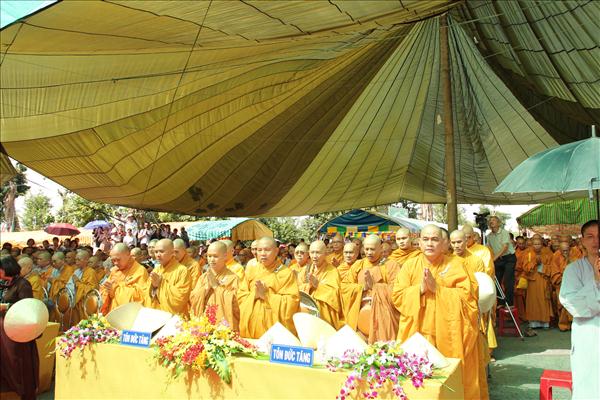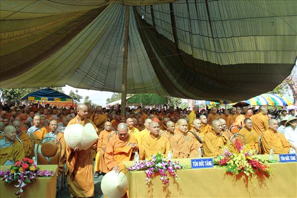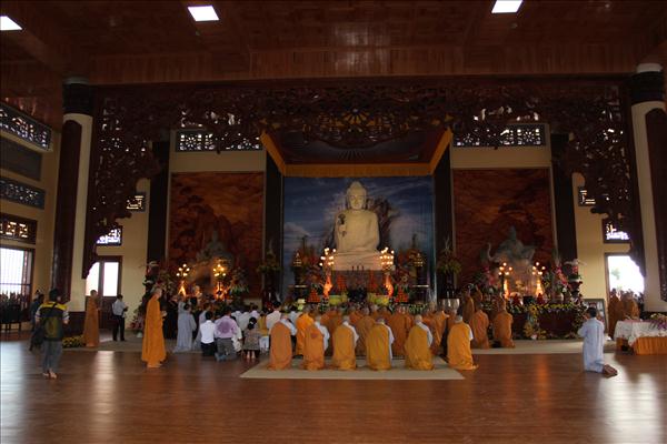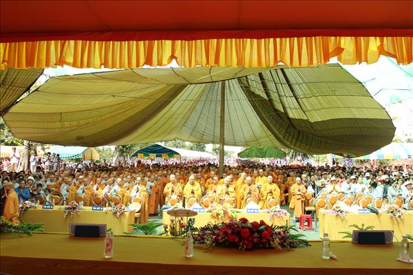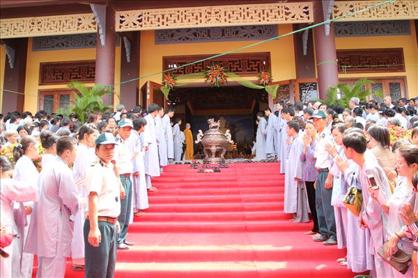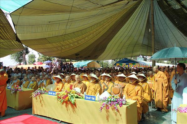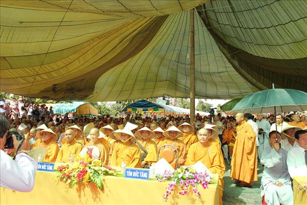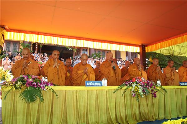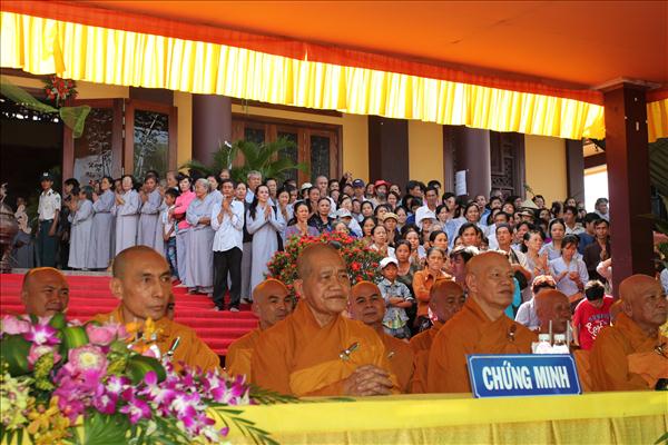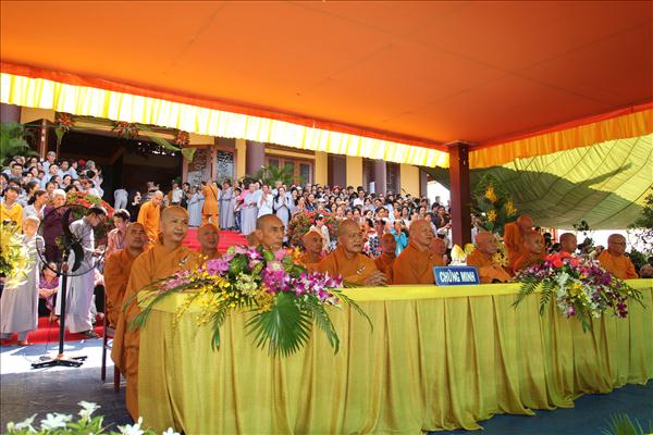 Từ sáng sớm, rất đông chư Tăng Ni và Phật tử từ khắp nơi (có 700 Chư Tăng, Ni và hơn 30 ngàn phật tử) đã lần lượt huân tập về Thiền viện trong niềm hân hoan chào đón thiền viện mới sắp được hoàn thành.