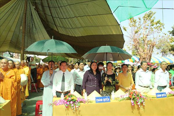 Đến chứng minh và tham gia buổi lễ có H.T Thích Trí Chơn, H.T Thích Đạo Huệ, TT. Thích Thông Phương, TT Thích Thông Hạnh đại diện ban quản trị Thiền Phái Trúc Lâm, HT. Thích Chơn Lệ, TT. Thích Trí Viên, ĐĐ. Thích Đức Thắng đại diện ban trị sự Phật giáo địa phương, đại diện chính quyền các cấp cùng chư tôn đức Tăng, Ni lãnh đạo các Thiện viện trong tông môn.