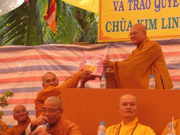 Đại diện cho chính quyền địa phương, ơng Trần Văn Tám phát biểu chúc mừng ngơi chùa Kim Linh I từ đây đã cĩ người kế thế. Tại buổi lễ ơng cũng khơng quên nhắc lại những việc làm hữu ích mà vị tân Trụ trì đã làm được trong thời gian qua.