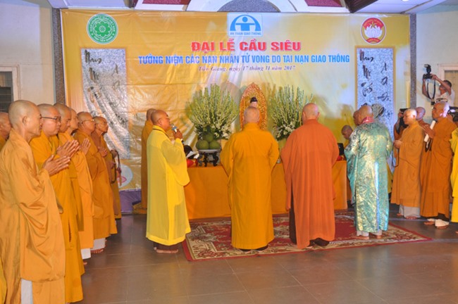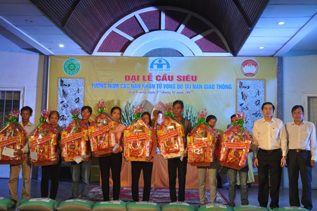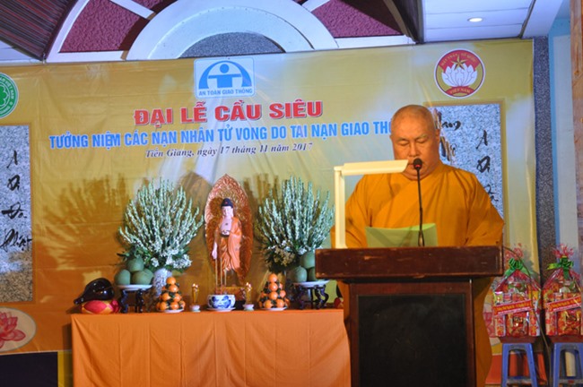 Tối nay, ngày 17 tháng 11 năm 2017, tại Nhà Văn hóa trung tâm thành phố Mỹ Tho (số 27, Nam Kỳ Khởi Nghĩa, Phường 4, Thành phố Mỹ Tho, tỉnh Tiền Giang), Ủy ban Mặt trận Tổ quốc Việt Nam tỉnh Tiền Giang, Ban An toàn giao thông tỉnh Tiền Giang, cùng Ban Trị Sự GHPGVN tỉnh Tiền Giang đã trang nghiêm tổ chức Lễ cầu siêu các nạn nhân tử vong do tai nạn giao thông “Tưởng niệm người đi vì người ở lại”.