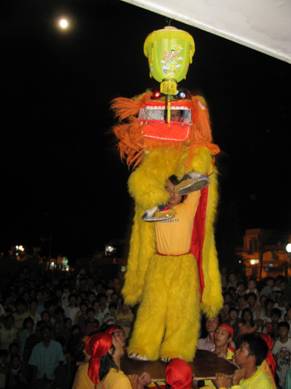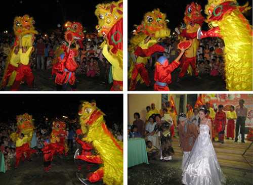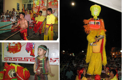 Không khí đêm Hội thật vui tươi, ấm áp và không kém phần sống động bởi sự góp mặt của đoàn múa lân, bởi ánh sáng đèn lồng và tiếng hát ca rộn rã.