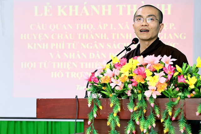 Phát biểu tại lễ bàn giao, ĐĐ Thích Toàn Hảo – đại diện cho Hội Từ Thiện Thiền Tôn Phật Quang (BRVT) nói lời chúc sức khỏe đến các cấp chính quyền. Đại đức chia sẻ: nhiều năm qua Hội Từ Thiện tham gia các chương trình xây dựng cầu nông thôn là để tạo điều kiện cho đồng bào vùng sâu, vùng xa có cuộc sống tốt đẹp hơn.