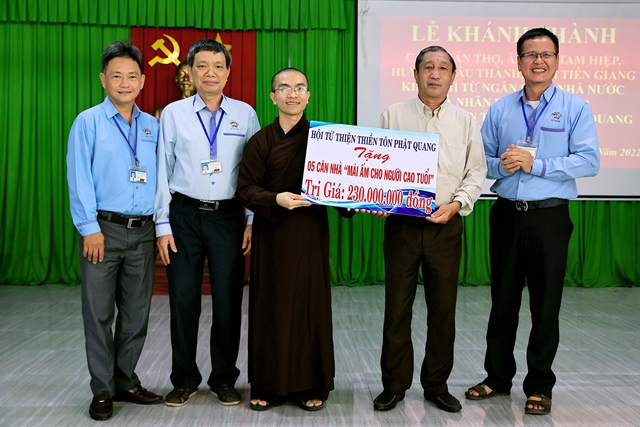 Dịp này, ĐĐ Thích Toàn Hảo đã trao bảng tượng trưng hỗ trợ 230 triệu đồng để xây dựng mới, sửa chữa 05 căn “Mái ấm người cao tuổi” tại khu vực tỉnh Tiền Giang. Và Ông Nguyễn Ngọc Minh – Chủ tịch Hội Người Cao Tuổi tỉnh tiếp nhận.