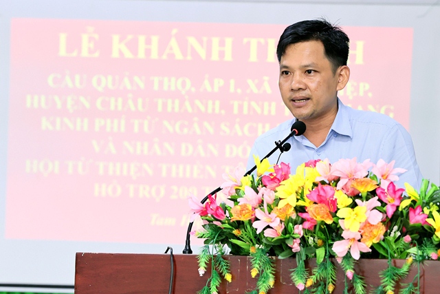 Tại buổi Lễ, ông Nguyễn Anh Tú, Phó Chủ tịch UBND xã Tam Hiệp báo cáo quá trình thi công cầu. Ông cho biết: xã Tam Hiệp, nằm ở phía Bắc huyện Châu Thành có diện tích tự nhiên là 2.121ha, có 8 ấp, tổng số gần 16 nghìn dân, đã ra mắt xã nông thôn mới vào năm 2016. Đến nay hệ thống giao thông thủy lợi cơ bản đã hoàn thành. Riêng tỉnh lộ 38 có chiều dài 1.600m chưa có xây dựng cầu để phục vụ cho 35ha nằm ở phía Bắc. Hiện nay bà con đang sản xuất lúa, hoa màu và các loại cây ăn trái. Bởi vậy, ao ước có một cây cầu nối 2 bờ sông là niềm mong mỏi và nhu cầu hết sức bức bách của người dân nơi đây. Đây cũng là tuyến đường giao thông chính nối liền giữa ấp I và ấp VII.