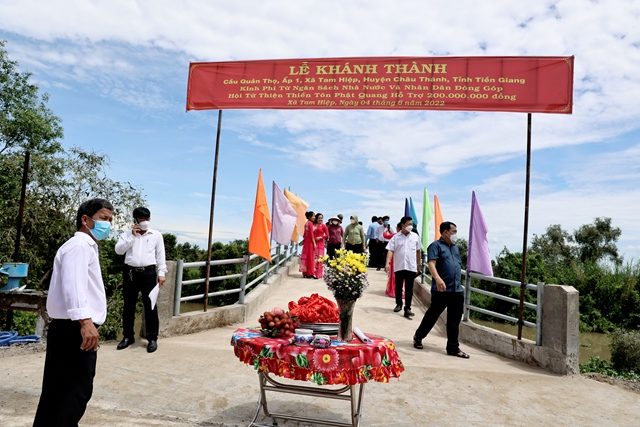 Sáng ngày 04/06/2022, nhằm ngày (06/05/Nhâm Dần), Hội Từ Thiện Thiền Tôn Phật Quang (BRVT) do ĐĐ Thích Toàn Hảo làm Trưởng đoàn đã phối hợp với Ban Thường trực UB MTTQVN huyện Châu Thành, UB MTTQVN tỉnh Tiền Giang và UBND huyện Châu Thành cùng Đảng bộ UBND, UB MTTQVN xã Tam Hiệp tổ chức Lễ bàn giao và Khánh thành đưa vào sử dụng cầu Kênh Quản Thọ tại ấp 1, xã Tam Hiệp, huyện Châu Thành, tỉnh Tiền Giang