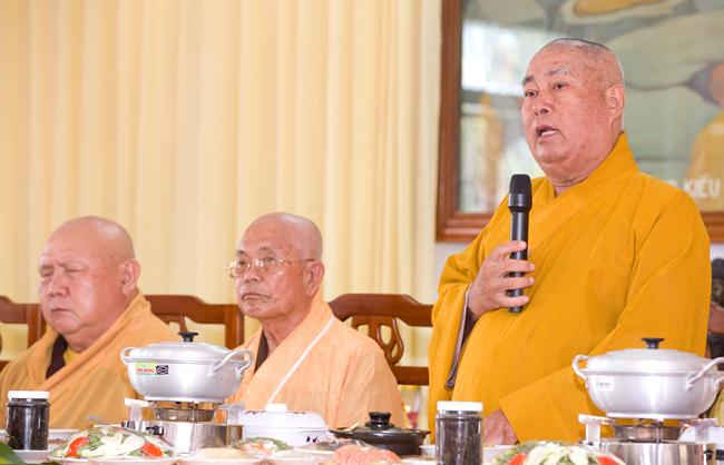 Sau lời tác bạch cúng dường trai Tăng của môn đồ pháp phái, HT Thích Huệ Minh – Trưởng BTS tỉnh hội PG tỉnh Tiền Giang đã ban pháp ngữ chứng minh cho buổi Lễ này. Hoà thượng đã nhắc đến công hạnh và sự đóng góp của cố Ni trưởng đối với GHPGVN tỉnh Tiền Giang trong thời gian từ 1985 – 2003.