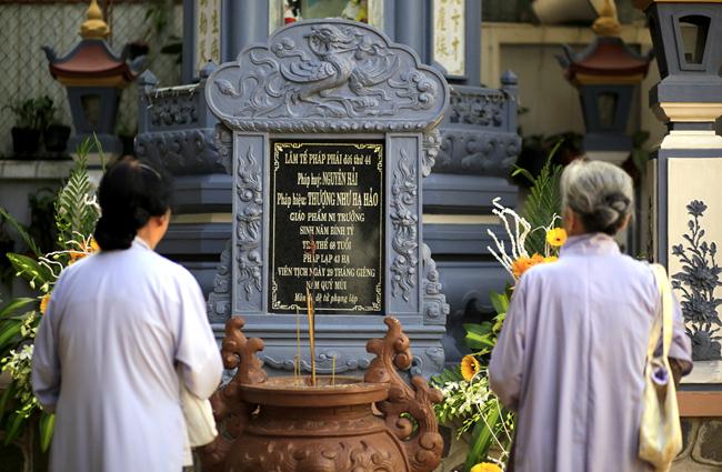 Tiếp đến, Chư tôn Giáo phẩm lãnh đạo Giáo hội dâng hương tưởng niệm trước Giác linh đài Cố Ni trưởng.