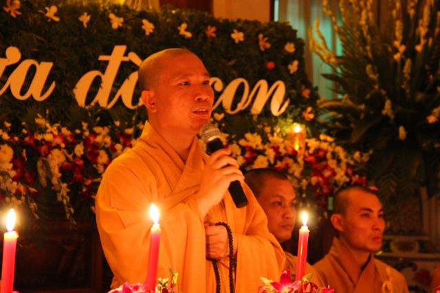 ĐĐ. Thích Nhuận Đức thay mặt chư tôn đức nói lên ý nghĩa hoa hồng mùa Vu Lan. Bằng giọng nói trầm ấm, thầy ôn tồn chia sẻ niềm hạnh phúc của những người đang còn diễm phúc có mẹ có cha trong cuộc đời, để được cài bông hồng đỏ thắm lên ngực áo, đồng thời ai ủi những ai đã khiếm khuyết cha hoặc mẹ, phải nhận bông hoa màu hường. Đặc biệt, thầy hướng đến những ngươi con bất hạnh, phải nhận về màu trắng tang thương khi hai đấng sanh thành đã qua đời. Thầy dặn dò, những màu hoa khác nhau như thế không phải để bi quan, buồn tủi mà là cơ hội để chúng ta nhìn lại bản thân đã và chưa làm được gì cho cha và mẹ của mình.