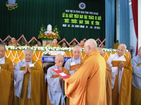 Tiếp theo, TT Thích Hoằng Đức tuyên bố danh sách Ban Chứng Minh và thành phần nhân sự PB.ĐTNG trực thuộc Ban Tăng Sự tỉnh hội nhiệm kỳ VI (2009 – 2012). TT Thích Huệ Minh – Trưởng BTS/PG/tỉnh đã trao quyết định chuẩn y những thành phần nhân sự này gồm: 7 thành viên chứng minh, 15 thành viên chính thức và 7 thành viên dự khuyết do Ni trưởng TN Như Bình làm Trưởng Phân Ban Đặc Trách Ni Giới, văn phòng đặt tại chùa Tịnh Nghiêm – 145 Ấp Mỹ An, xã Mỹ Phong – TP.MT