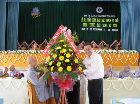 Về phía chính quyền có: ông Nguyễn Hữu Chí – Chủ tịch UBND tỉnh, ông Trương Hoàn Trung – Trưởng BTG tỉnh, Bà Trần thị Kim Cúc – Bí thư tỉnh ủy TG, ông Nguyễn Văn Vững – Phó chủ tịch MTTQ TPMT, ông Trần Văn Mừng – Chủ tịch MTTQ TPMT, ông Nguyễn Văn Phước – Phó chủ tịch UBND huyện Gò Công Tây… và đại diện các ban ngành đoàn thể trong thành phố. Ngoài ra còn có sự hiện diện của các Tôn giáo bạn, đông đảo phật tử và Báo Đài.