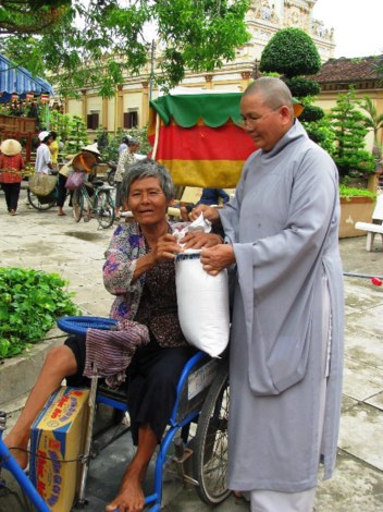 Cũng nhân dịp này, Ni sư TN Như Nguyện – Phó ban TTXH PG tỉnh Tiền Giang, tặng 50 phần quà cho các hộ nghèo tại địa phương và ủng hộ 2 triệu đồng cho 1 bệnh nhân bị ung thư phổi phẩu thuật.