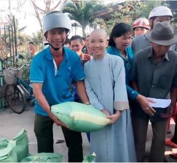 Sư cô Thích Nữ Quảng Châu và Thích Nữ Thảo Duyên, chùa Phụng Ân (xã Tân Thạnh Đông, huyện Củ Chi, TPHCM) cùng Phật tử Kim Thư, Giám đốc Công ty Gạch ngói Phương Định vừa thực hiện chuyến từ thiện tại xã Bình Ân, huyện Gò Công Đông (tỉnh Tiền Giang). Tại đây, đoàn đã tặng hơn 100 phần quà cho các hộ nghèo, gia đình chính sách khó khăn.